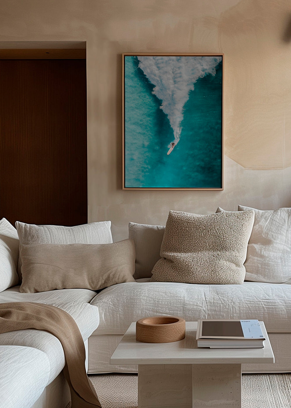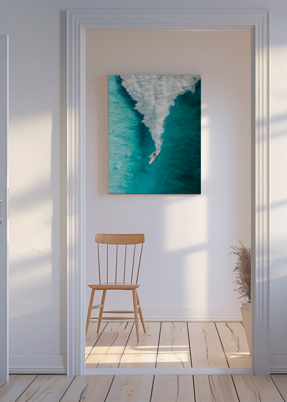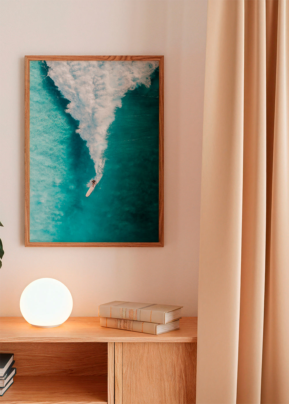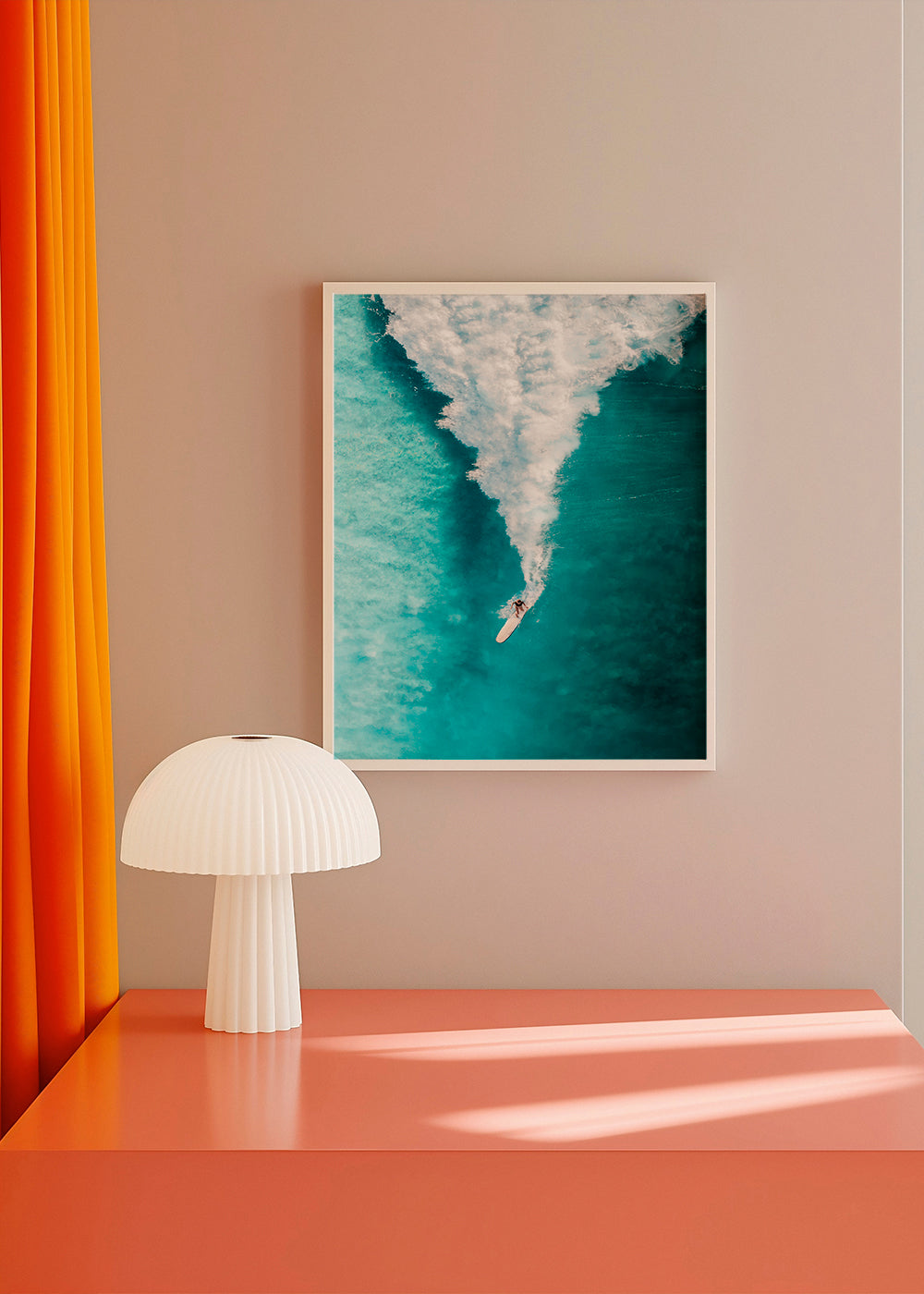Beautiful print from the surf posters and wall art collection, from the collection of the artist Gal Design, with shades of blue, and vertical layout. The tranquillity and freedom of landscape prints is one of a kind. It's always a good time to freshen up your home.