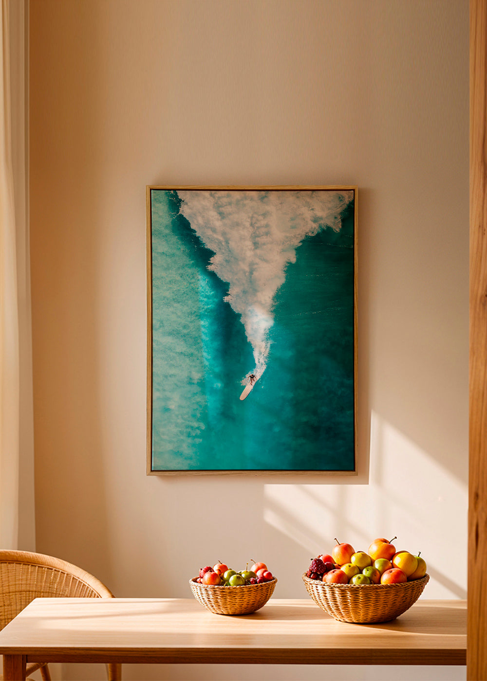 Canvas: printed on hand-stretched fabric for a more volumetric and artistic look, available with or without a frame.