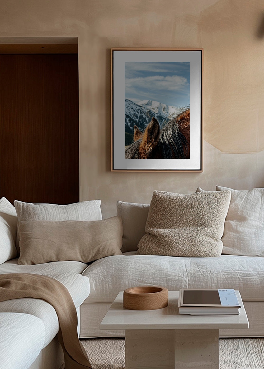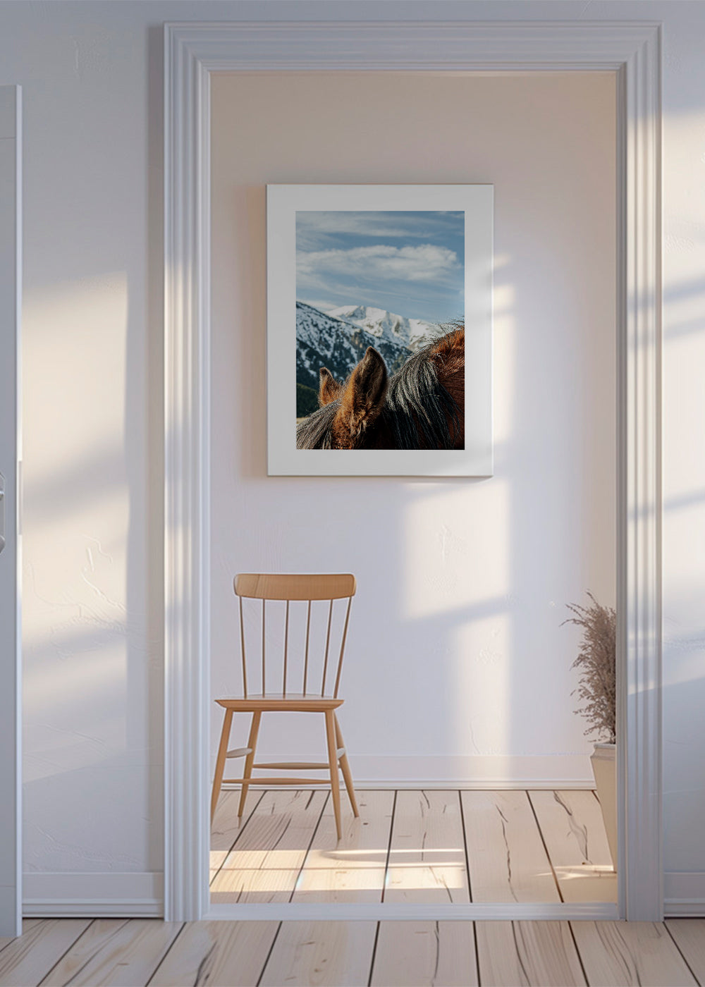 A poster from the horses wall art series, by the artist Ferran Feixas, in multicolor shades, and to hang in vertical position. Landscape decoration brings a breath of fresh air to any room. Transform your spaces with art.