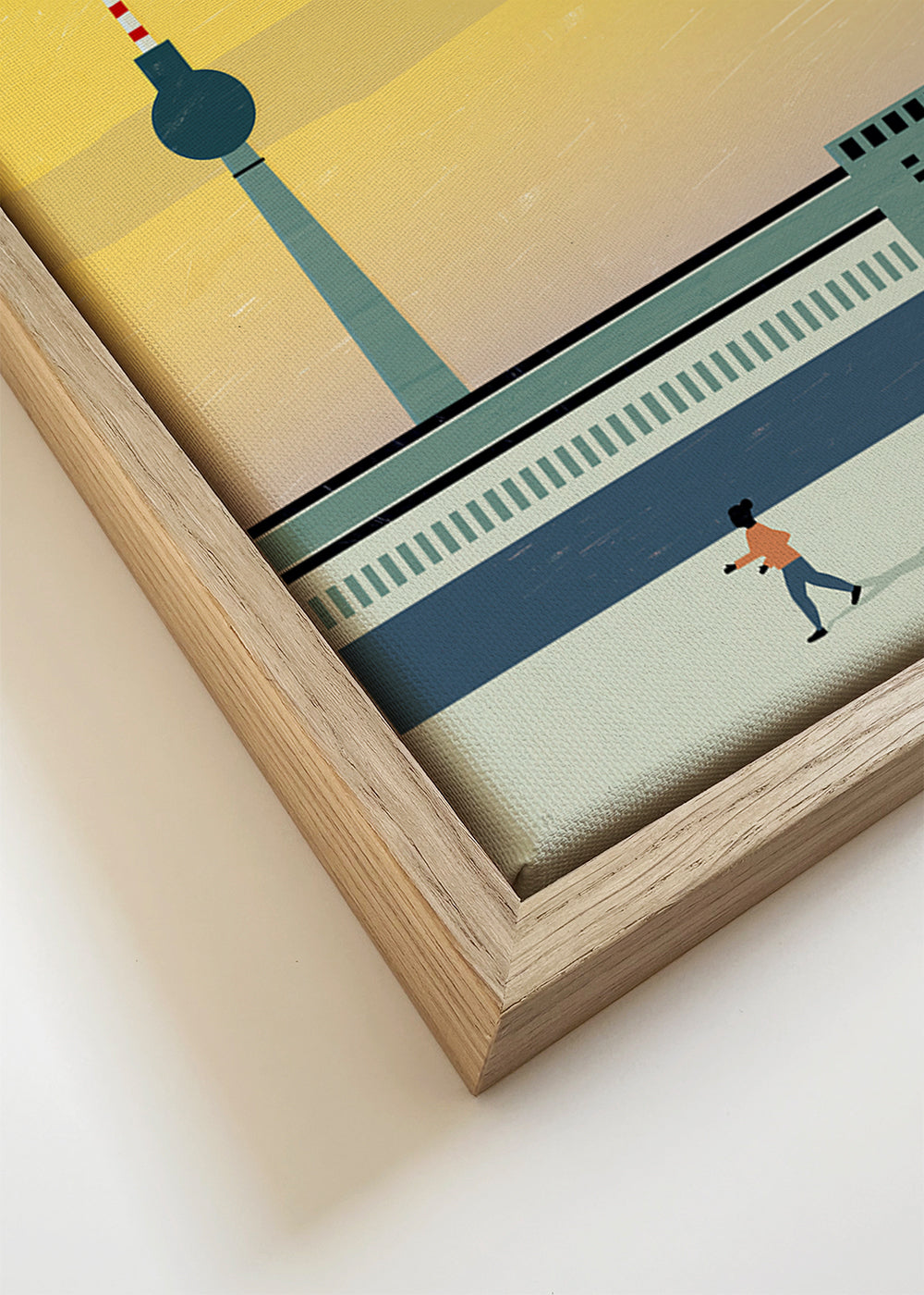 We work with solid wood and aluminium frames. All framed artworks are shipped already assembled and ready to hang. The front protection is made of high-clarity acrylic glass.