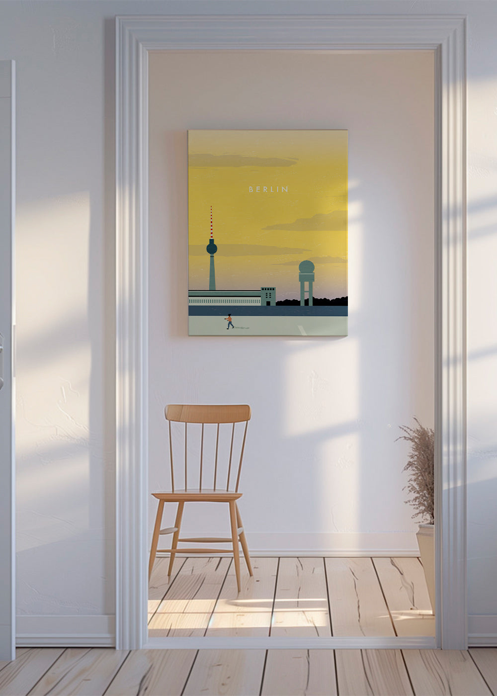 Beautiful poster from the travel posters collection, from the mind of Katinka Reinke, in tones of yellow, and to hang in vertical position. A perfect piece for the eternal traveller. Pair it with our map and city prints. Dress up your walls at home