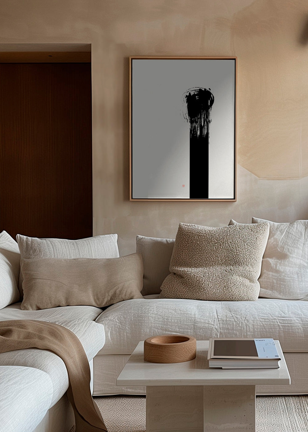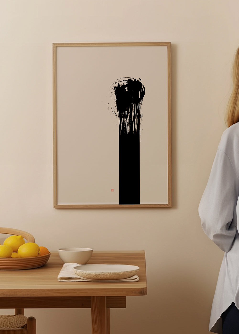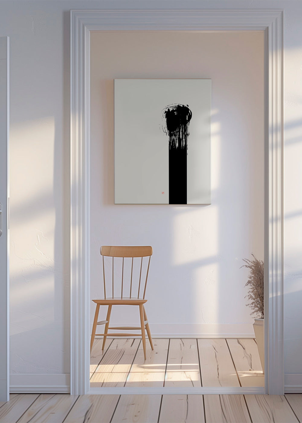 A design from our japanese wall art series, by creative artist Thoth Adan, in black and white shades, and vertical layout. The abstract, geometric shapes help create a casual, creative setting. Transform your spaces with art.