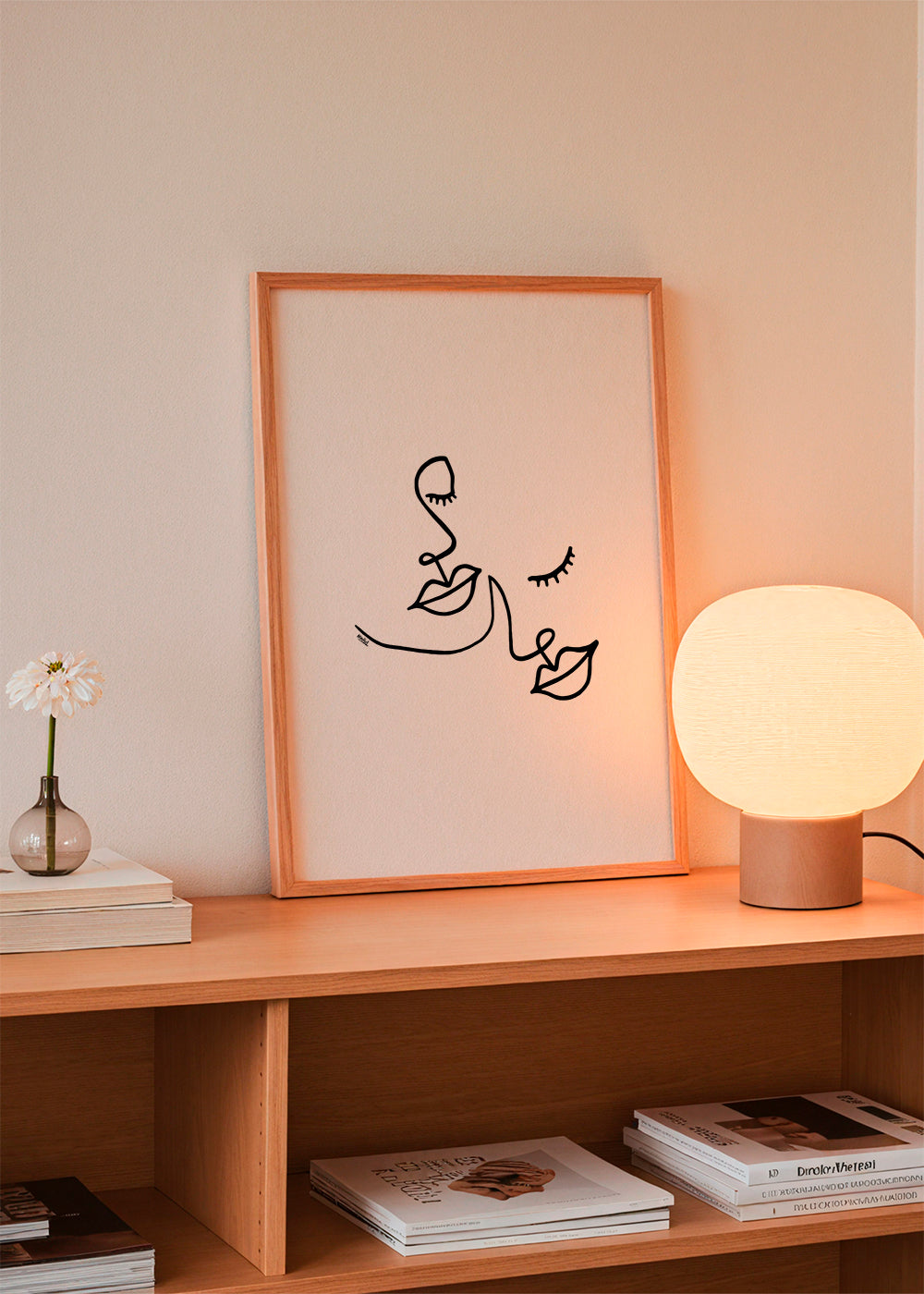 Beautiful piece in the style of our line art prints, created by Ninhol, with black and white tones, and facing vertically. Illustrated posters are perfect for pairing with minimalist and abstract art. Give your rooms a fresh look with art.