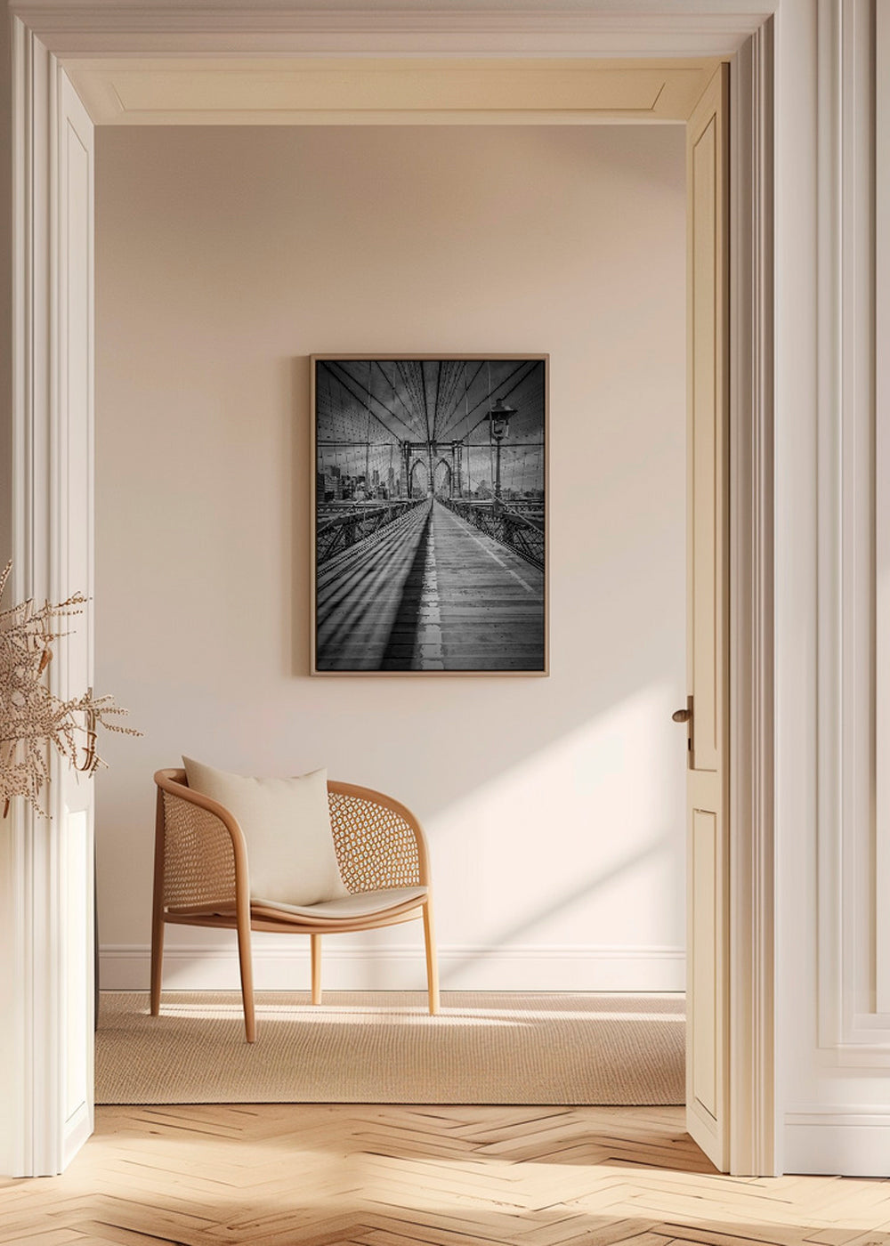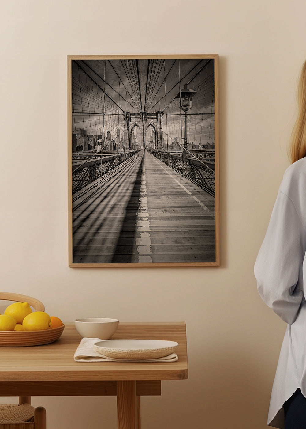 NEW YORK CITY Brooklyn Bridge black and white poster