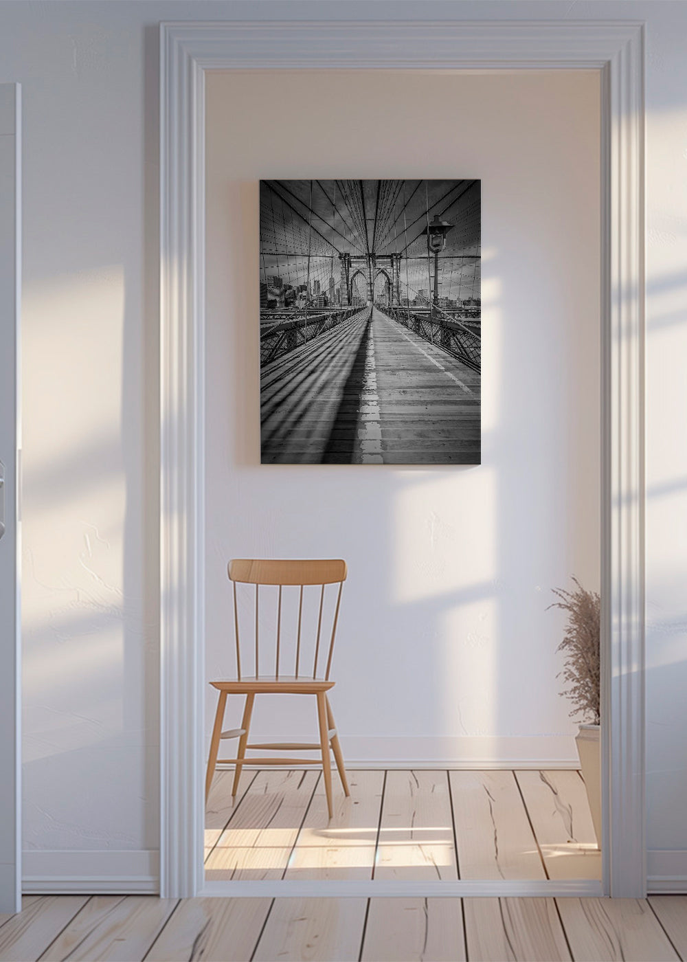 The canvas or photo canvas is a cloth supported by a wooden underframe on which our works of art are printed. Our modern canvas uses the highest quality fabric and pine wood for the 1.4 in deep underframe.
