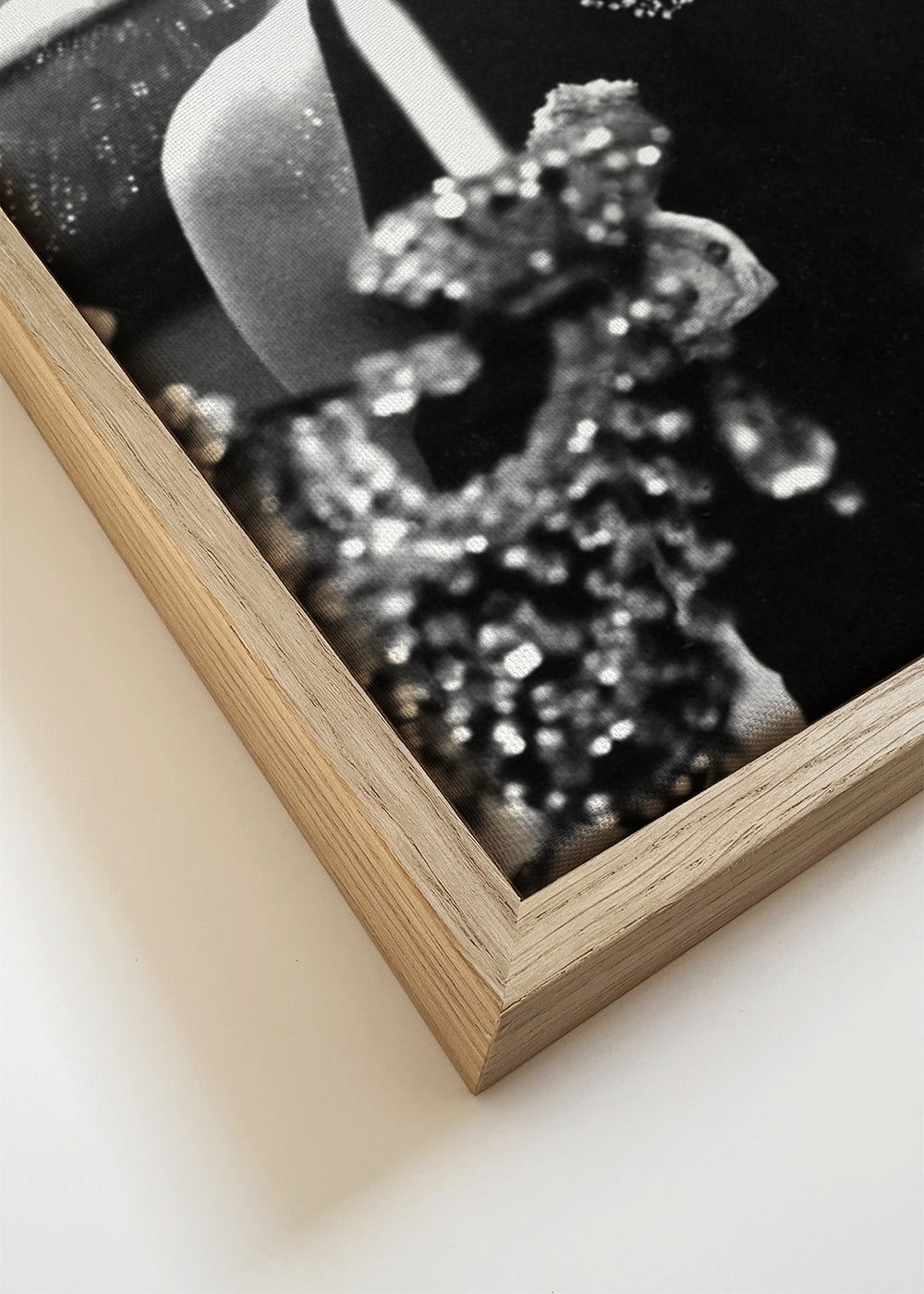 Black and white wall art Audrey Hepburn in Breakfast at Tiffany vintage photograph.