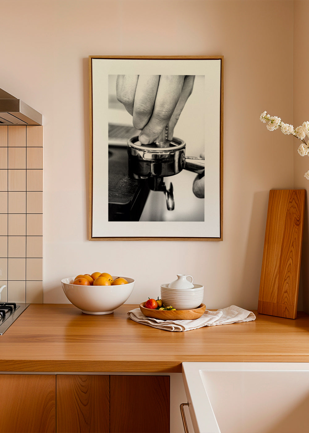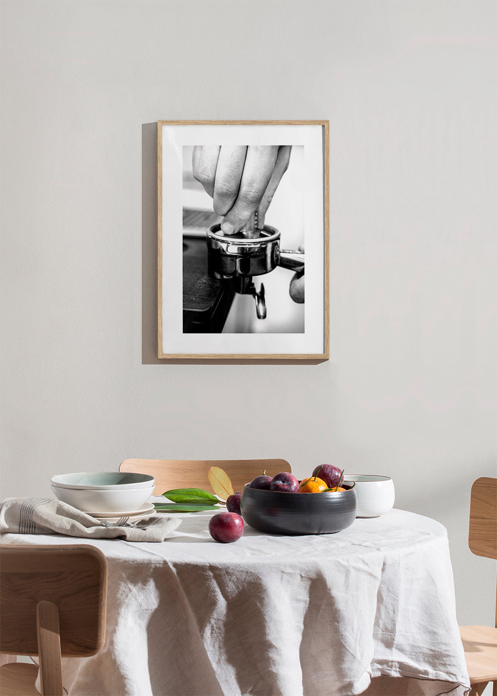 A poster from our coffee wall art collection, in tones of black and white, and with vertical layout. This photo is a perfect option to pair with other photo prints and create a gallery wall. Choose the size that best fits your decor. This design includes a white strip around it to add contrast to the piece.