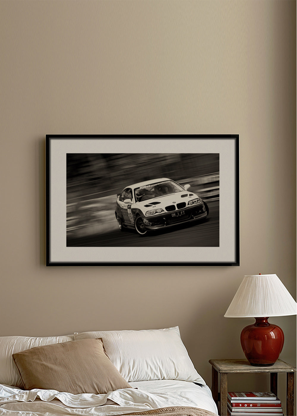 Beautiful print from our repertoire of cars posters and wall art, with black and white tones, and to hang in horizontal position. Photos to frame help make any home more modern. Refresh a whole room by just adding a few posters on the walls. This design includes a white strip around it to add contrast to the piece.