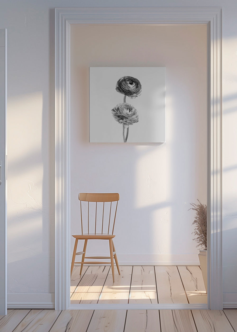 Each canvas is hand-stretched over a wooden frame. The depth is 3 cm for unframed canvases and 4 cm for framed canvases.