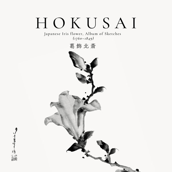 Black and white wall art Japanese Iris flower by Katsushika Hokusai - Square