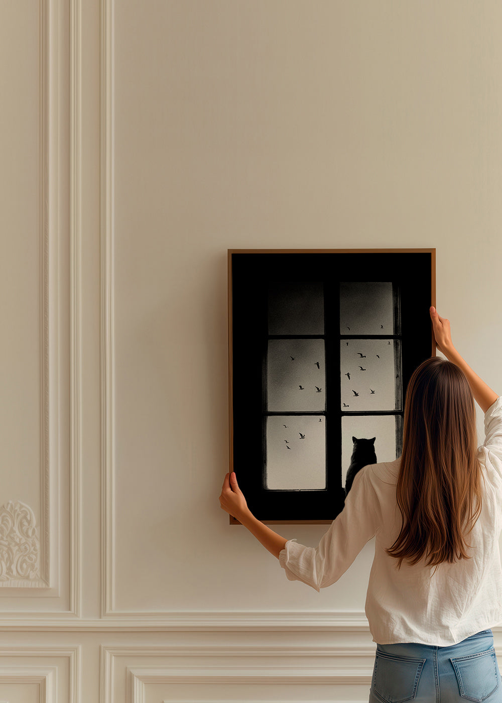 To hang our frames, you need to slightly separate the black or silver metal hanger from the back. Once separated, you can hang it from the hanger that you have chosen depending on the material of your wall.