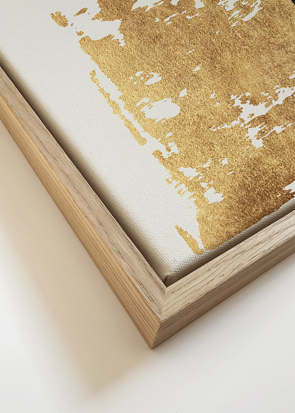 Each canvas is hand-stretched over a wooden frame. The depth is 3 cm for unframed canvases and 4 cm for framed canvases.
