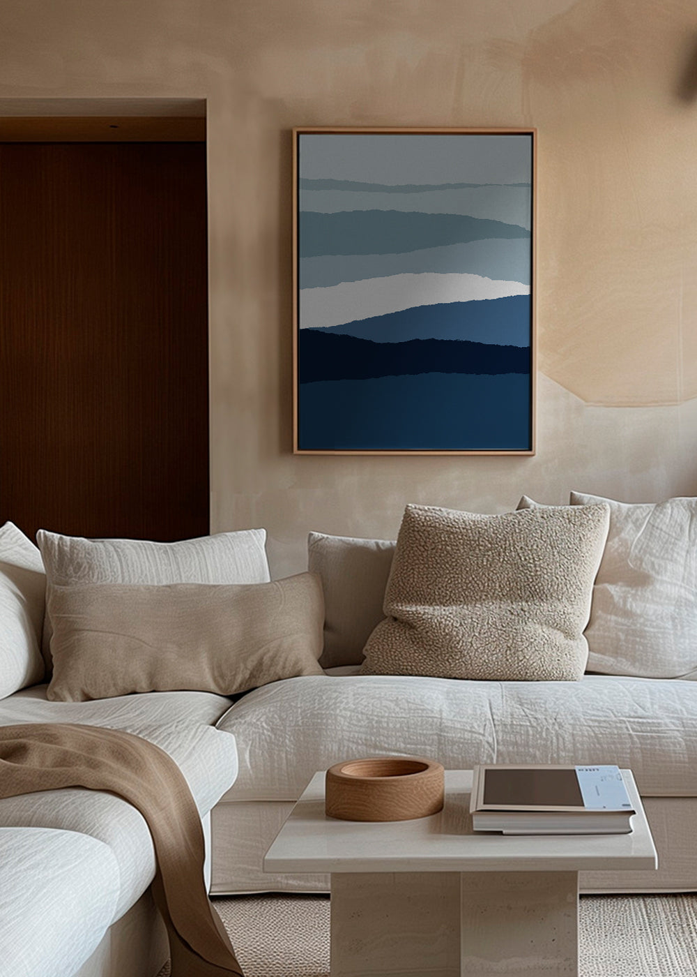 This print from our mountains wall art category, an original by Orara Studio, with blue pigments, and in vertical position. Landscape decoration brings a breath of fresh air to any room. There are no ugly or beautiful walls, just empty or full ones.