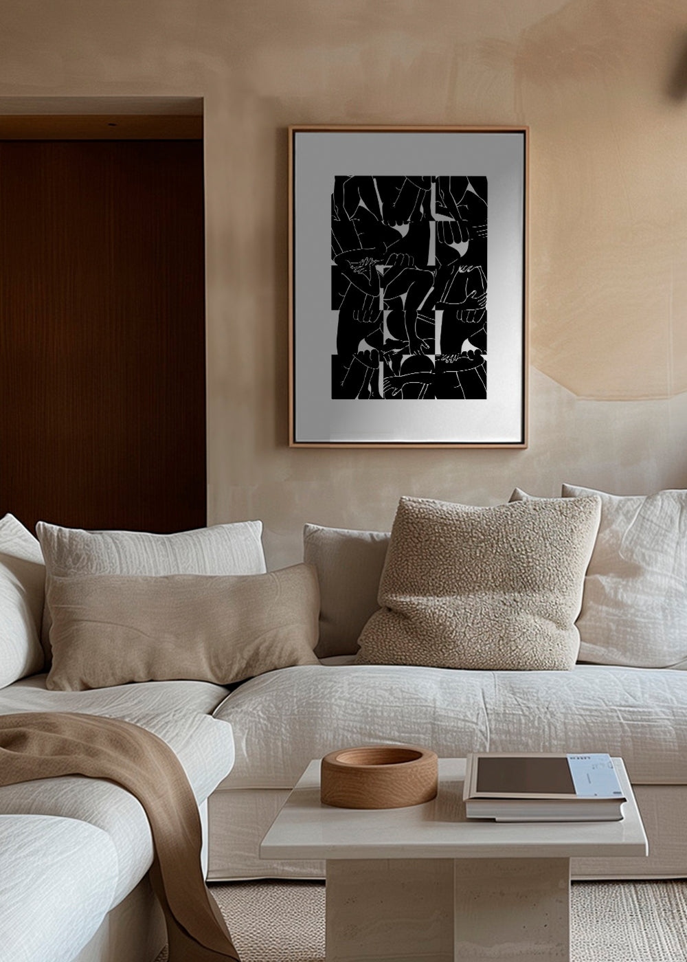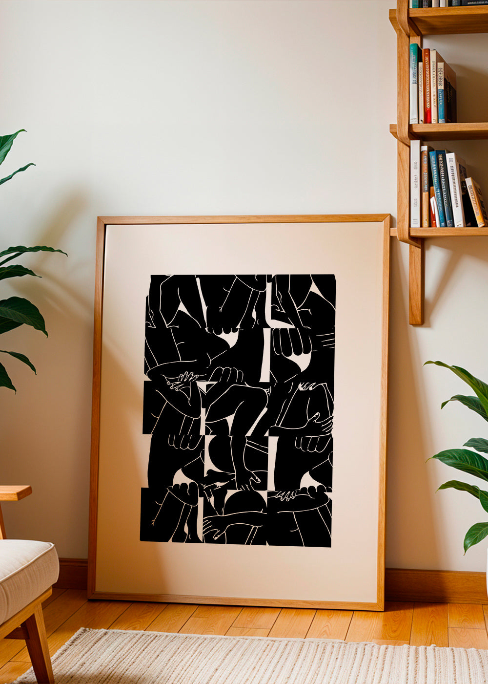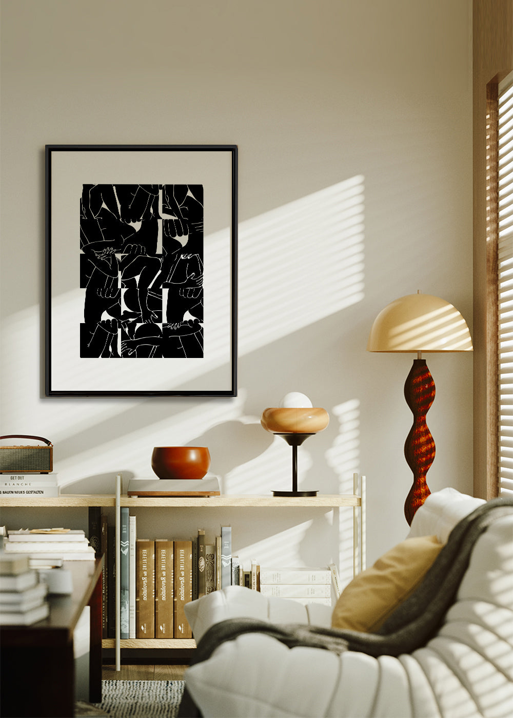 A print from the geometric wall art and prints series, created by Nordic Creators, in tones of black and white, and in vertical position. Geometric art is an elegant style to decorate the walls of your home with. Walls full of creativity.