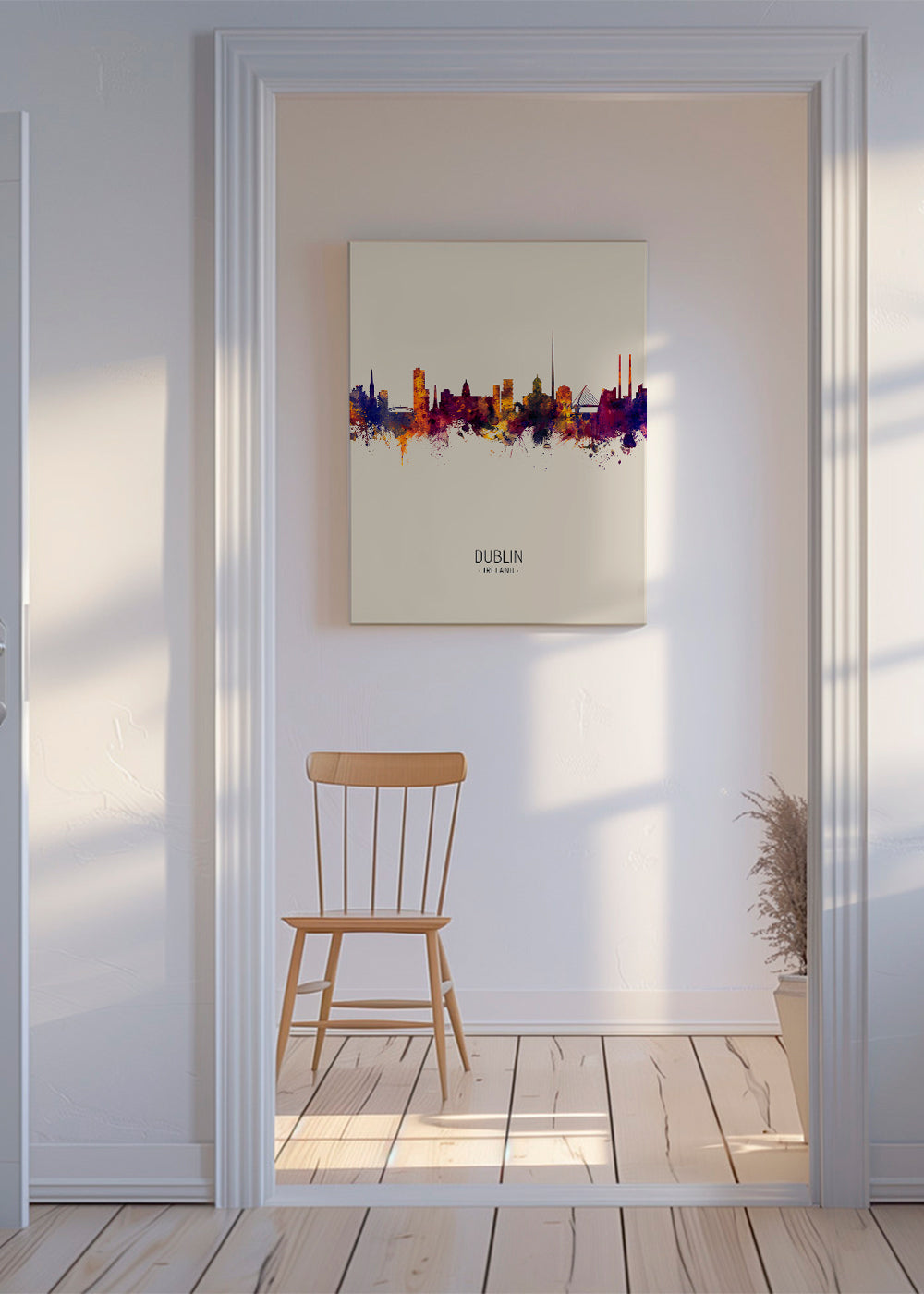 A design from our repertoire of skylines canvas, made by Michael Tompsett, with multicolor pigments, and vertical layout. Our map and city prints are perfect for those who love cities and architecture. Fill your walls with prints.