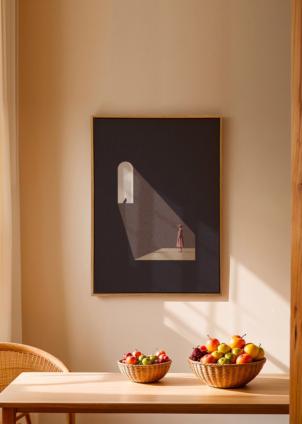 The passepartout is a white matt board that surrounds the poster to protect it from acrylic glass, and that also enhances the expressiveness of the work and emphasizes its details.