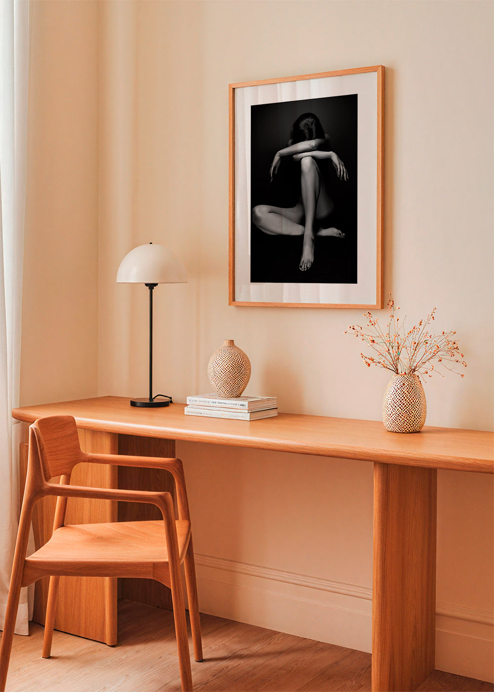 All our frames are manufactured in Spain. The white, black and oak frames are made of Ayous wood, and the oak ones are veneered in oak, while the metallic ones are made of aluminum.