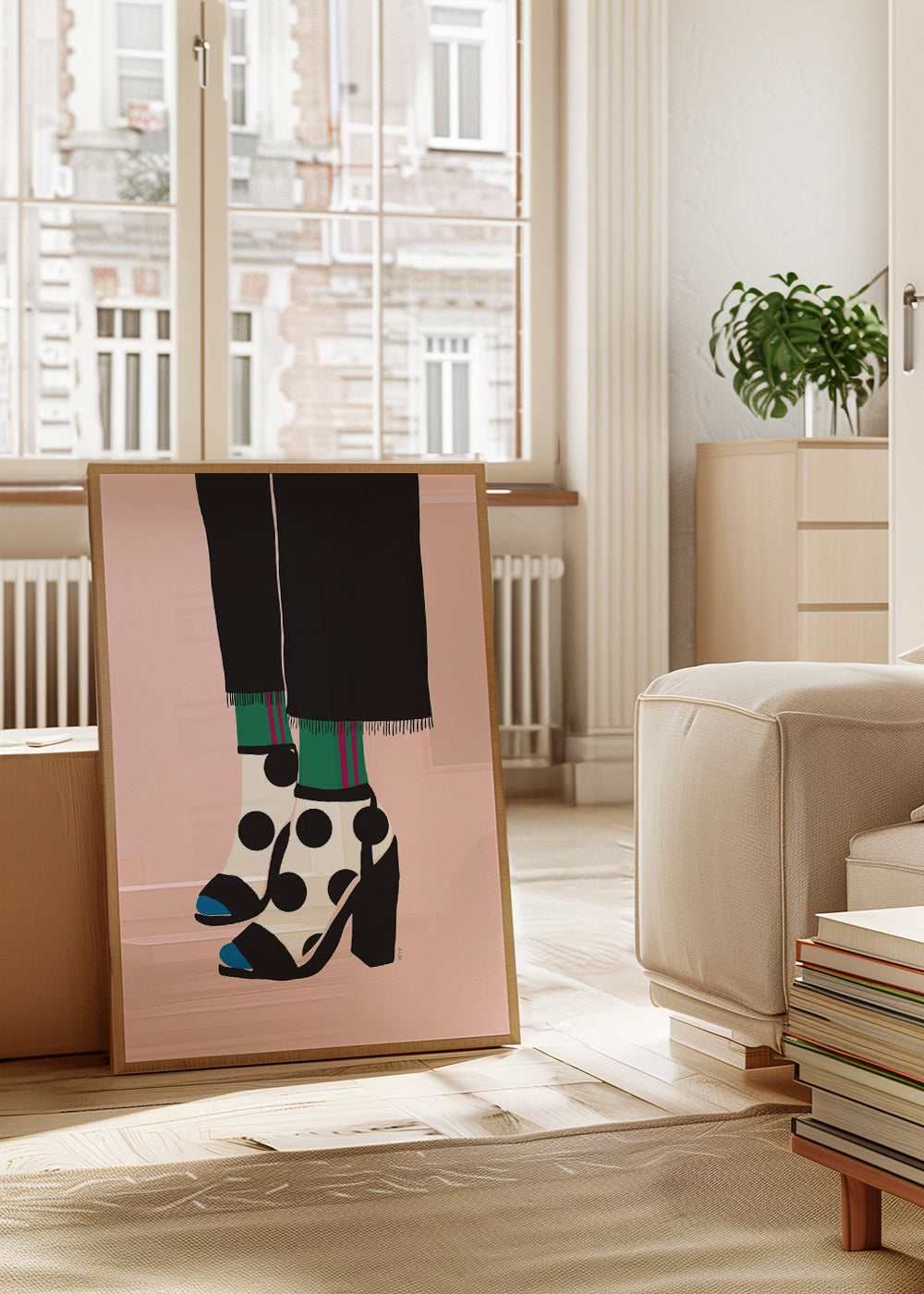 Beautiful piece from our fashion posters and wall art series, by creative artist Linda Gobeta, with pink pigments, and in vertical position. Scandinavian decoration never goes out of style, and this piece is perfect for spaces with a Nordic style. Walls decorated with prints are the ultimate.