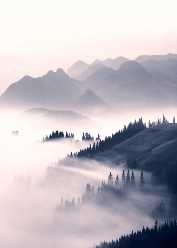 A print from our selection of mountains wall art, from the mind of Kathrin Pienaar, with pink tones, and in vertical position. Landscape prints are spectacular; pair them with texts and phrases to create cool wall compositions. Create spots full of art.
