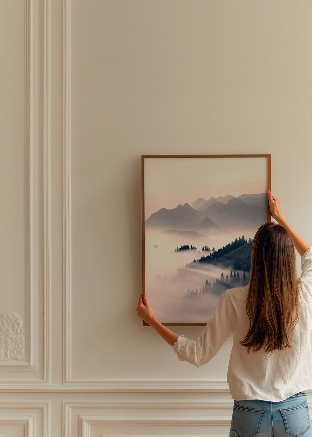 To hang our frames, you need to slightly separate the black or silver metal hanger from the back. Once separated, you can hang it from the hanger that you have chosen depending on the material of your wall.