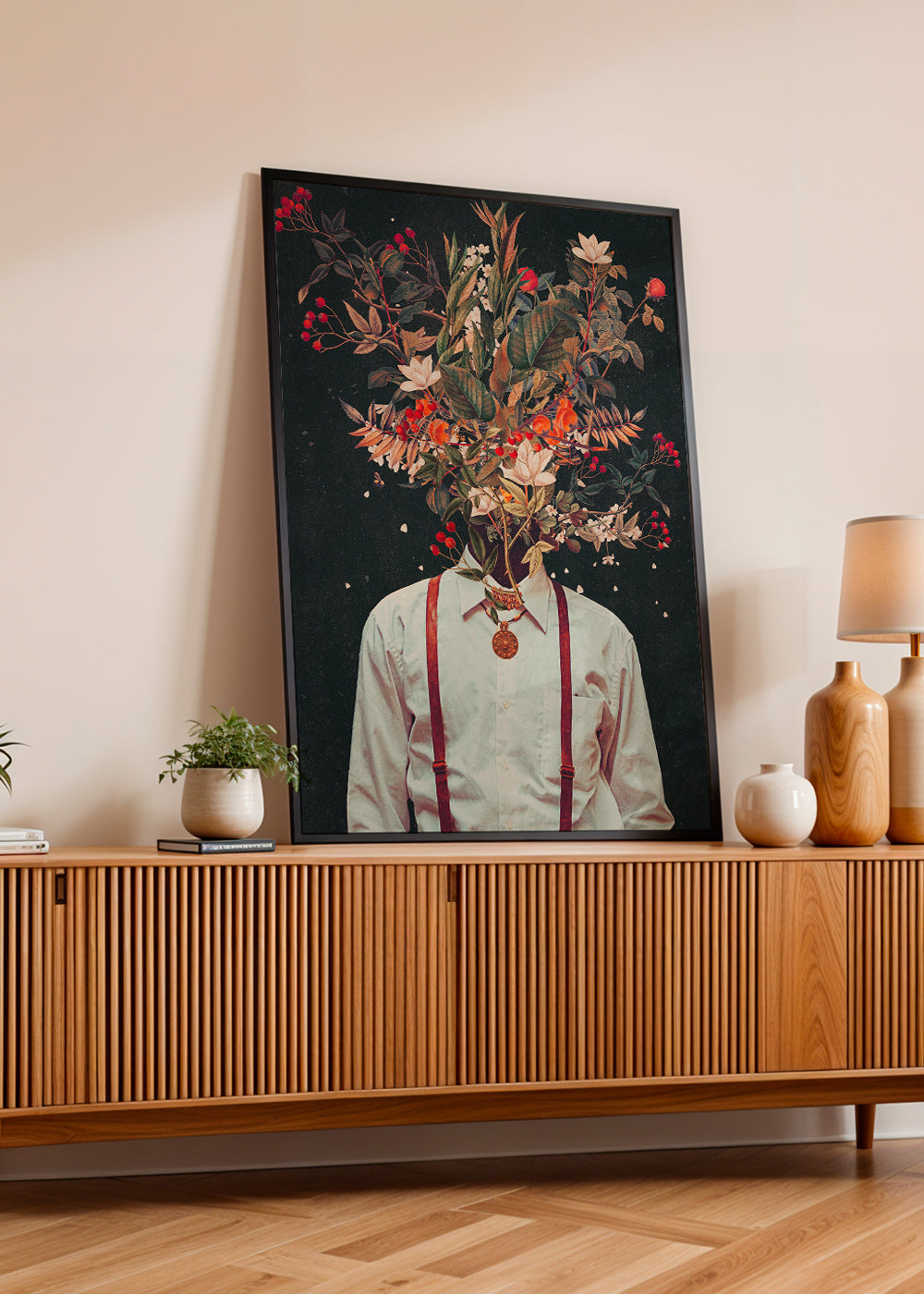A piece from the vintage wall art collection, from the mind of Frank Moth, with red tones, and vertical layout. Vintage prints give a super chic touch to any space. Create spots full of art.
