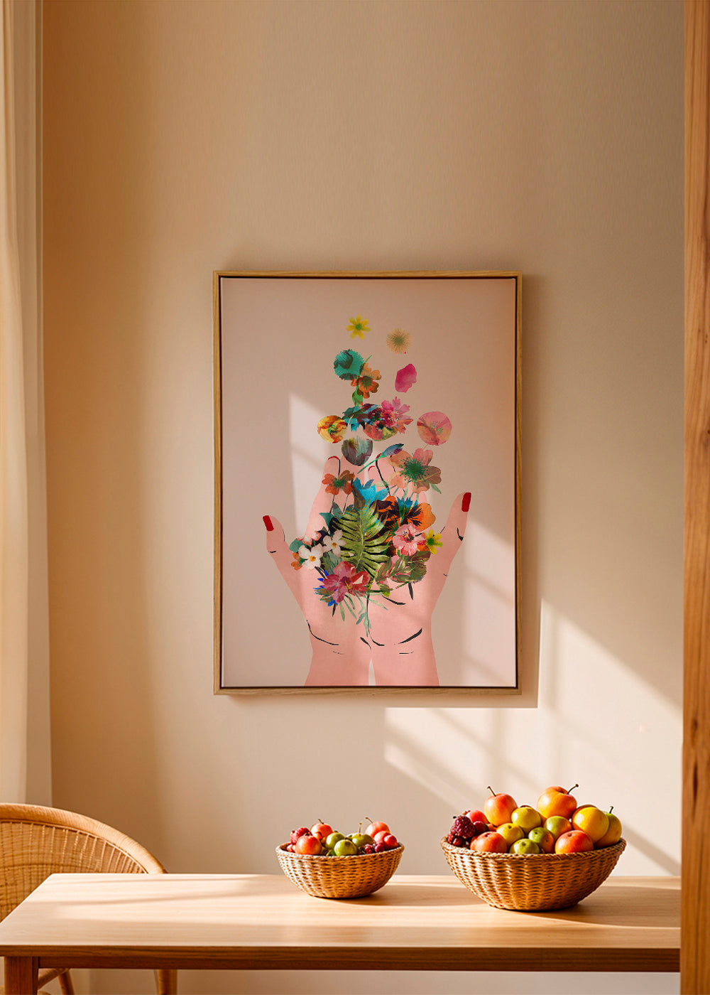 To hang our frames, you need to slightly separate the black or silver metal hanger from the back. Once separated, you can hang it from the hanger that you have chosen depending on the material of your wall.