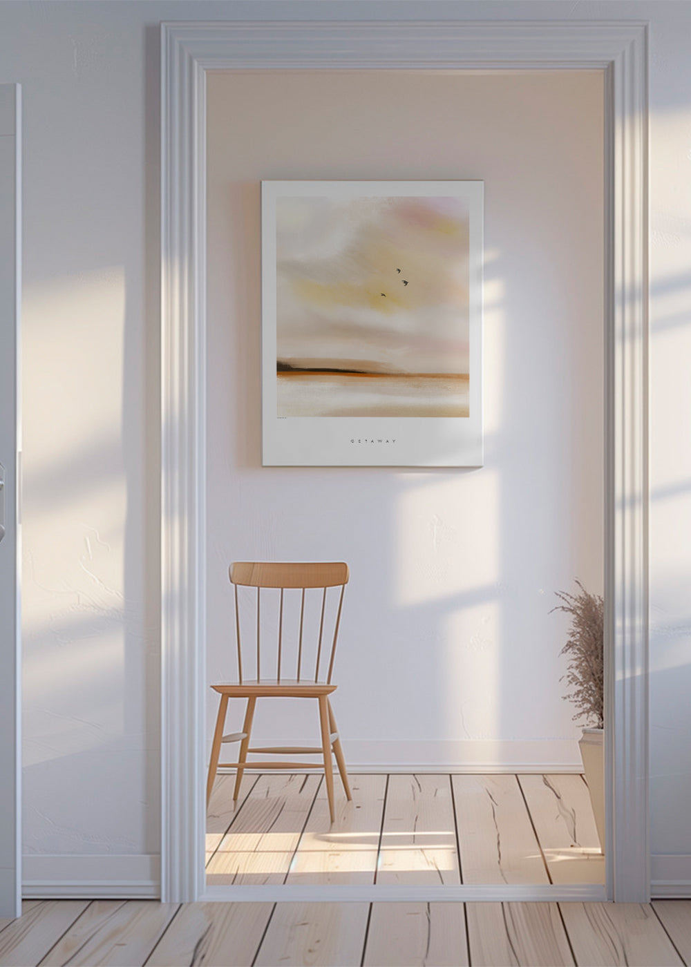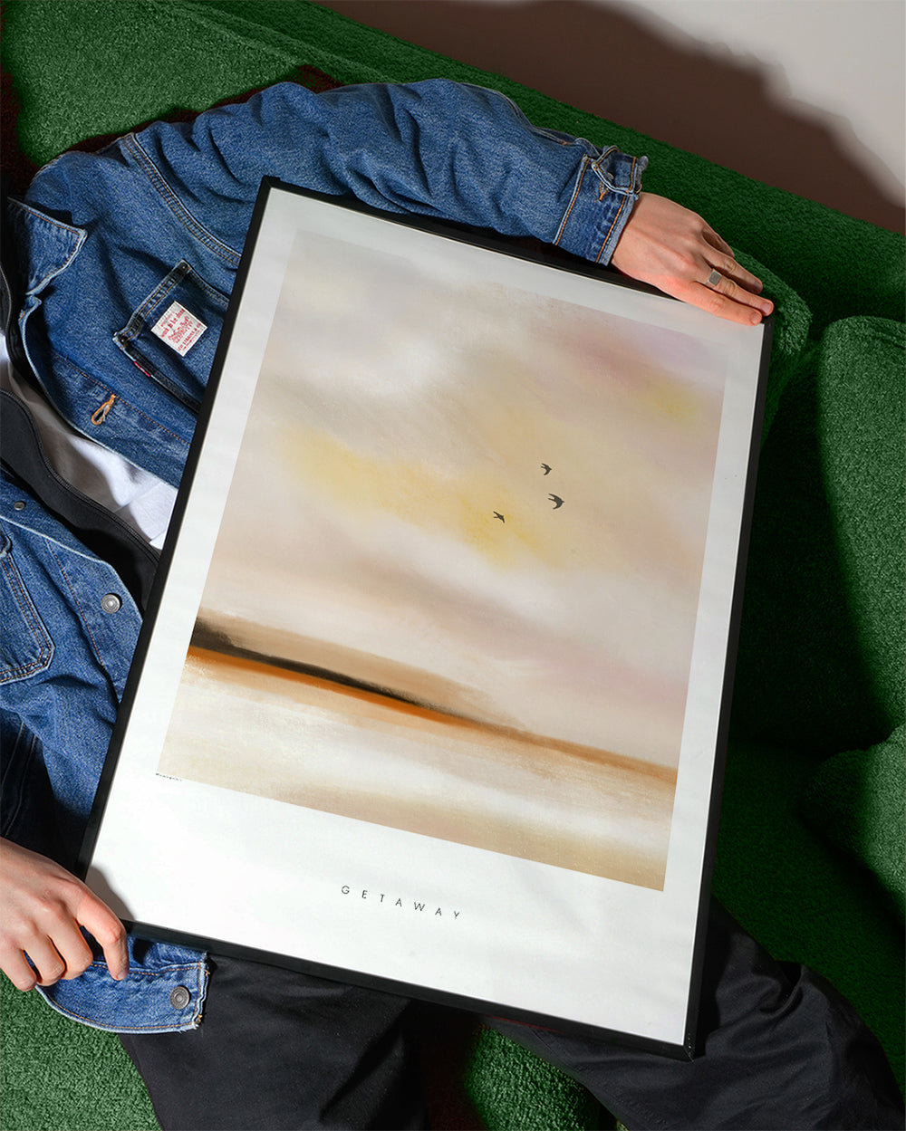 We work with solid wood and aluminium frames. All framed artworks are shipped already assembled and ready to hang. The front protection is made of high-clarity acrylic glass.