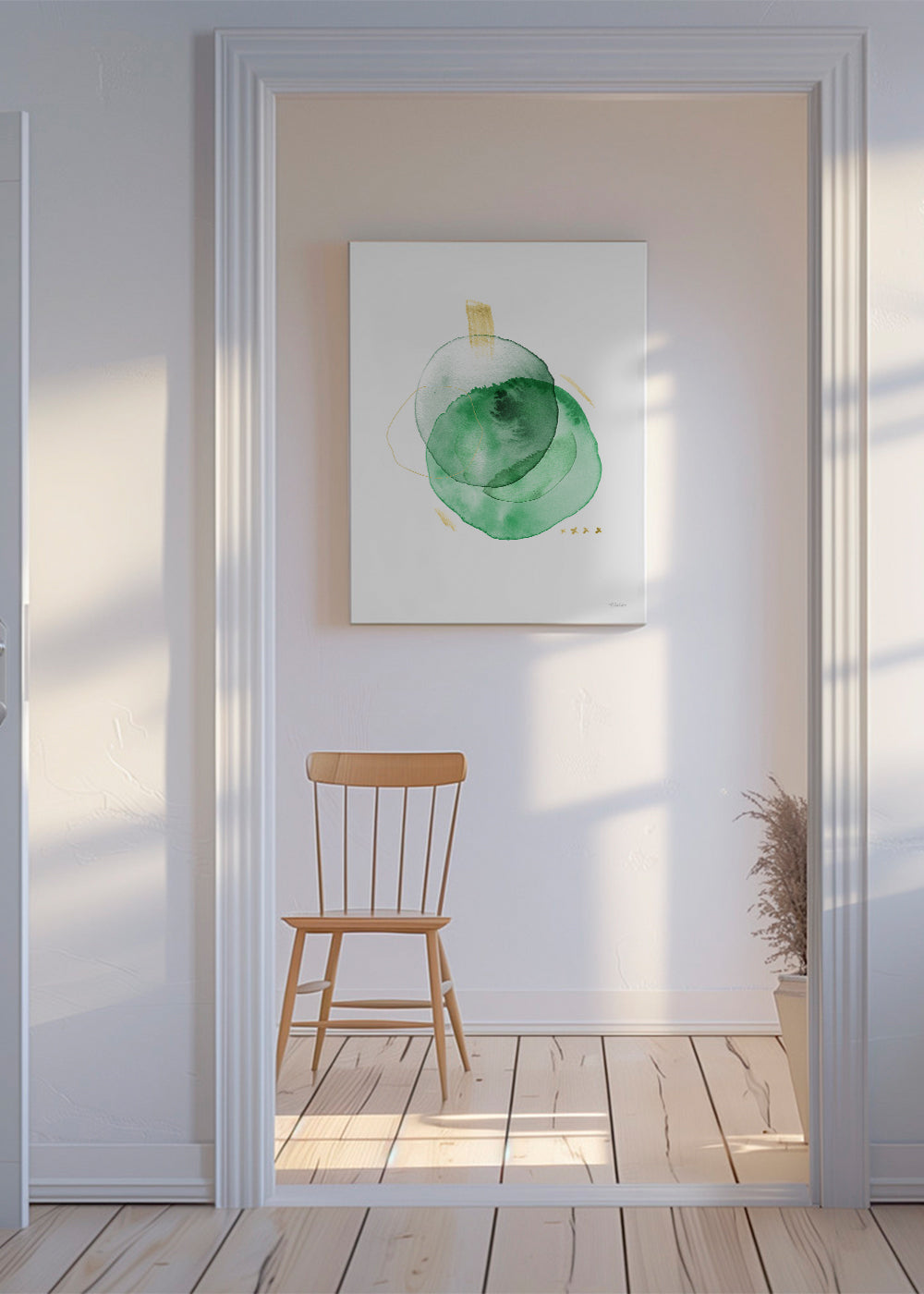 A poster from our geometric wall art and prints collection, made by Fabiana Silveira, with green, and with vertical layout. This piece with abstract shapes is perfect for pairing with other abstract art and geometric prints. A piece that will be a plus for any room.