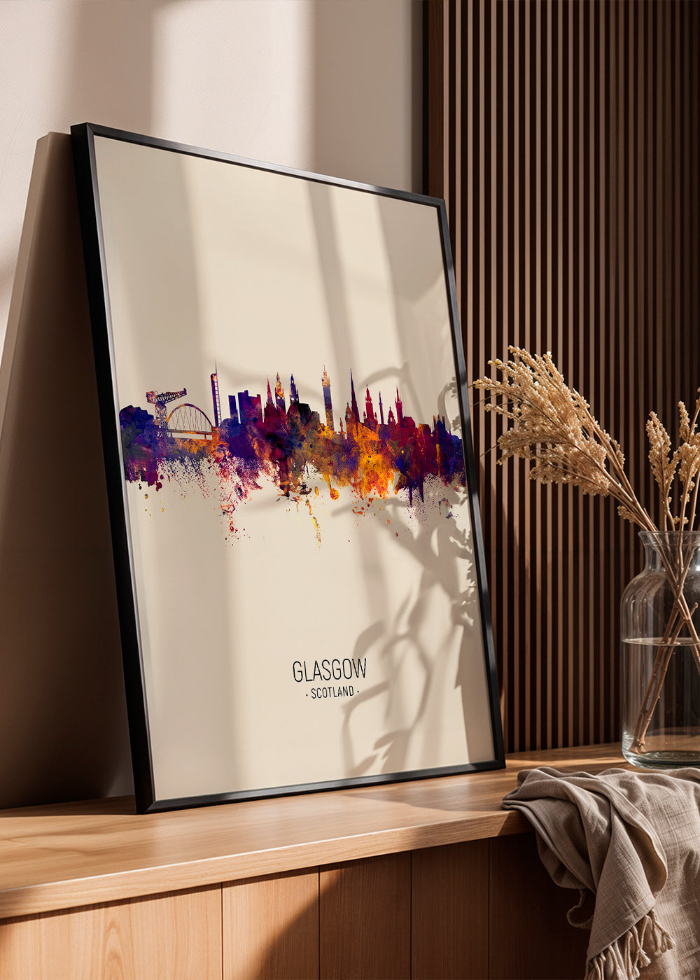 Glasgow skyline beige poster