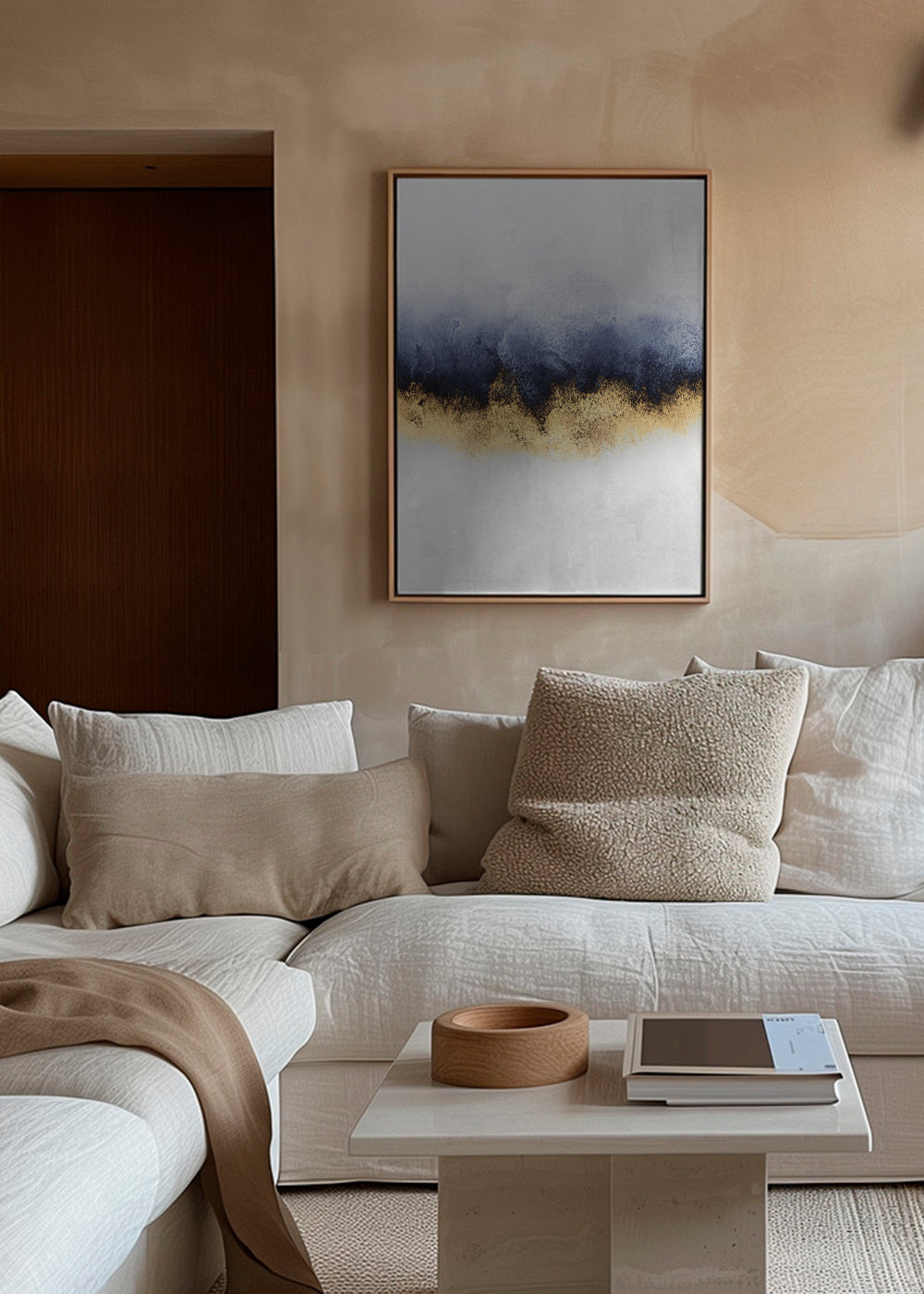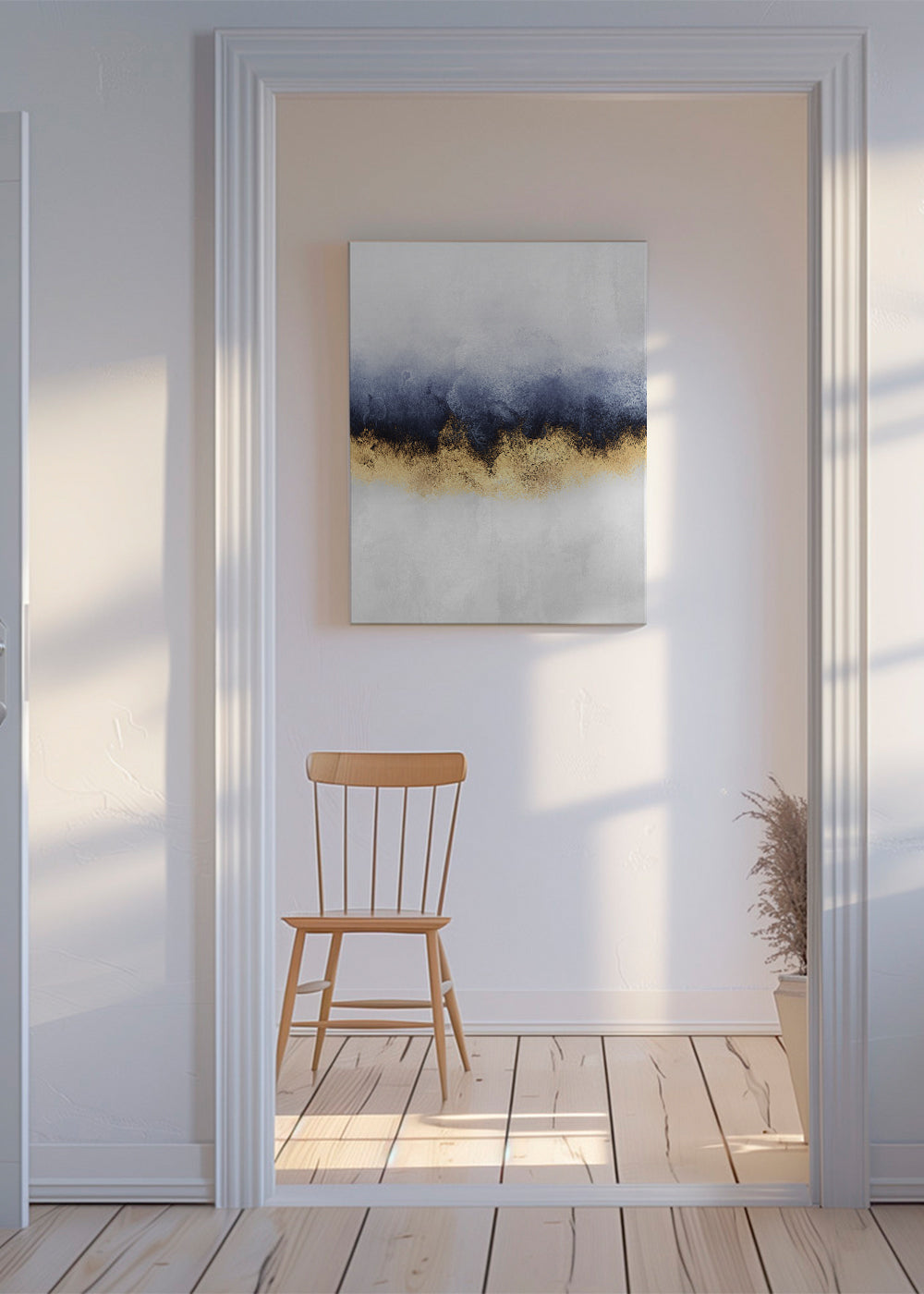 Each canvas is hand-stretched over a wooden frame. The depth is 3 cm for unframed canvases and 4 cm for framed canvases.