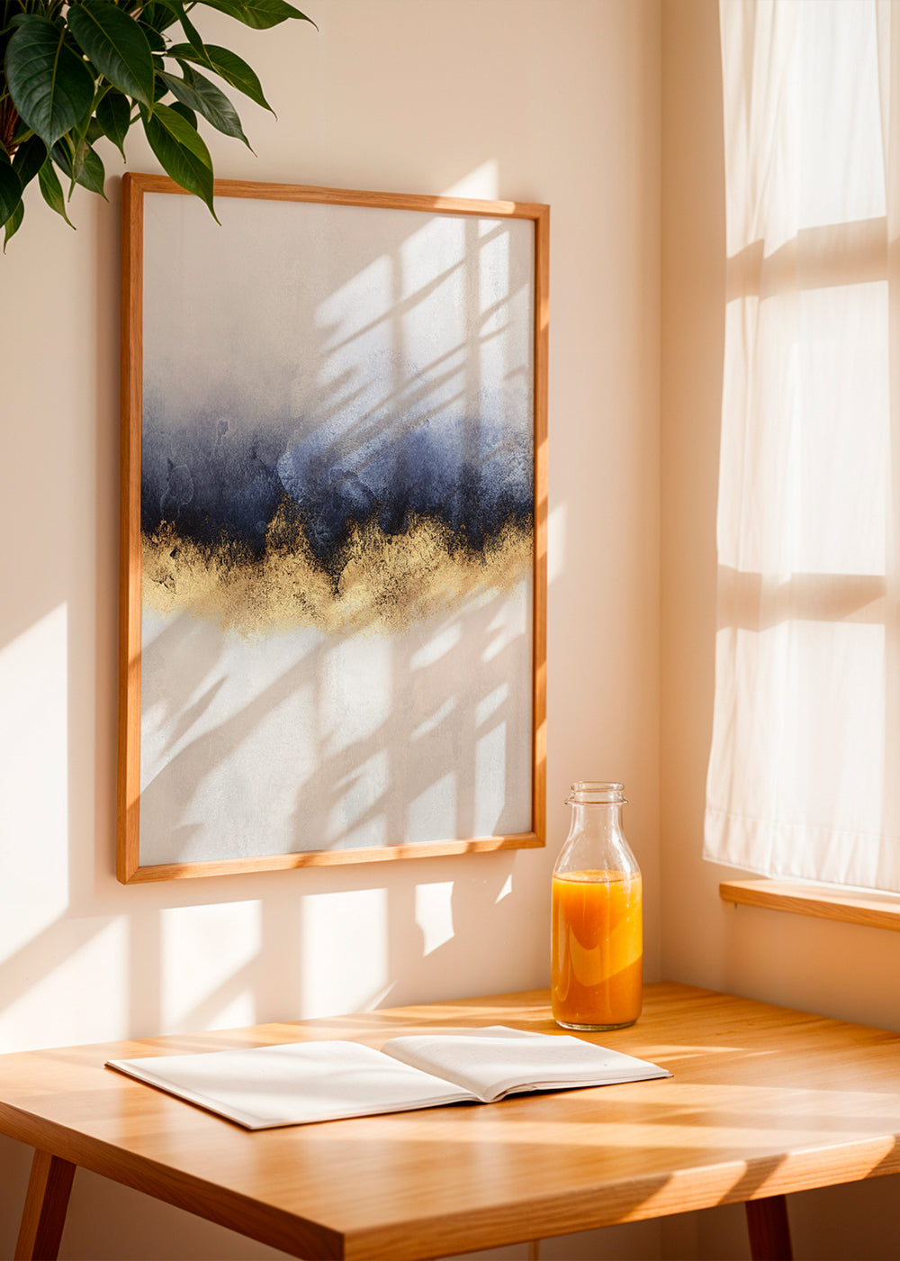 We work with solid wood and aluminium frames. All framed artworks are shipped already assembled and ready to hang. The front protection is made of high-clarity acrylic glass.