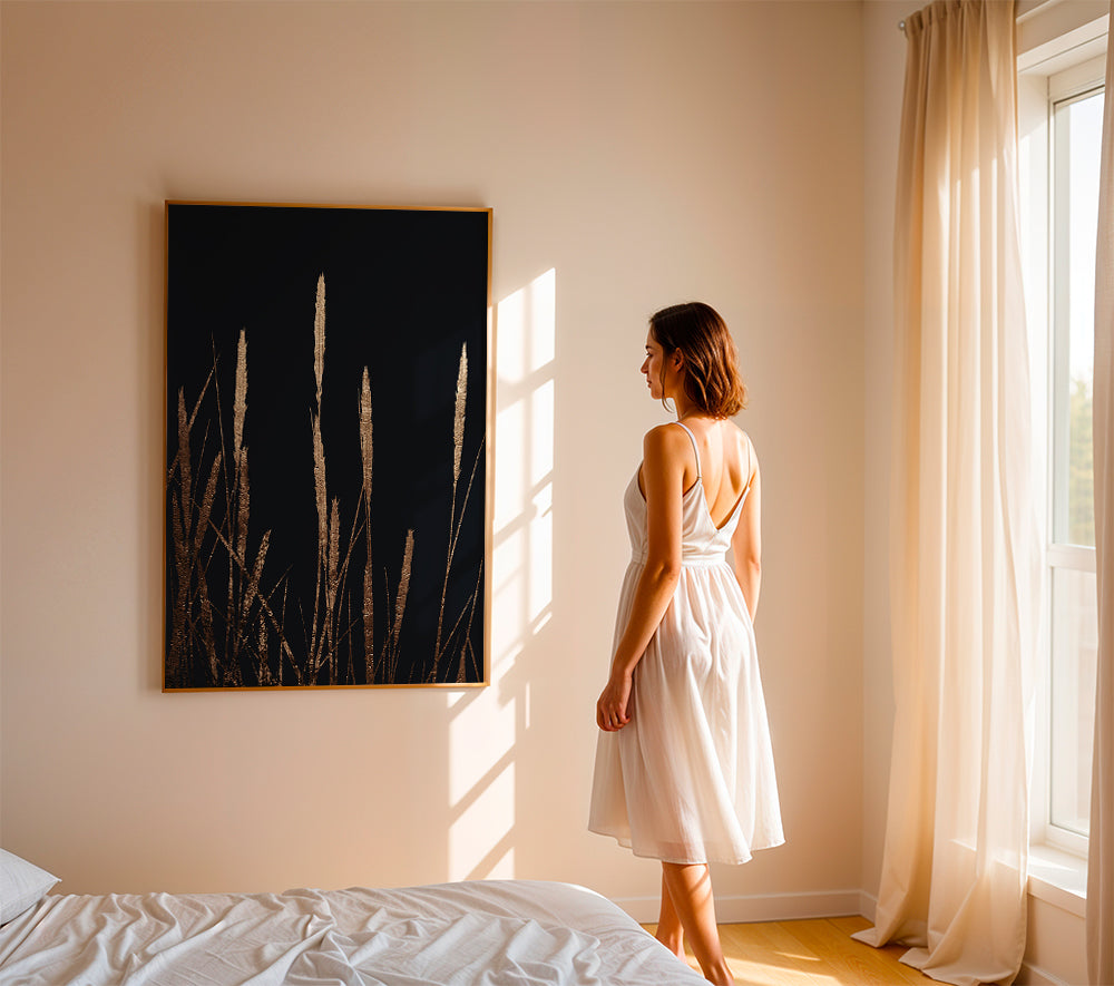 Each canvas is hand-stretched over a wooden frame. The depth is 3 cm for unframed canvases and 4 cm for framed canvases.