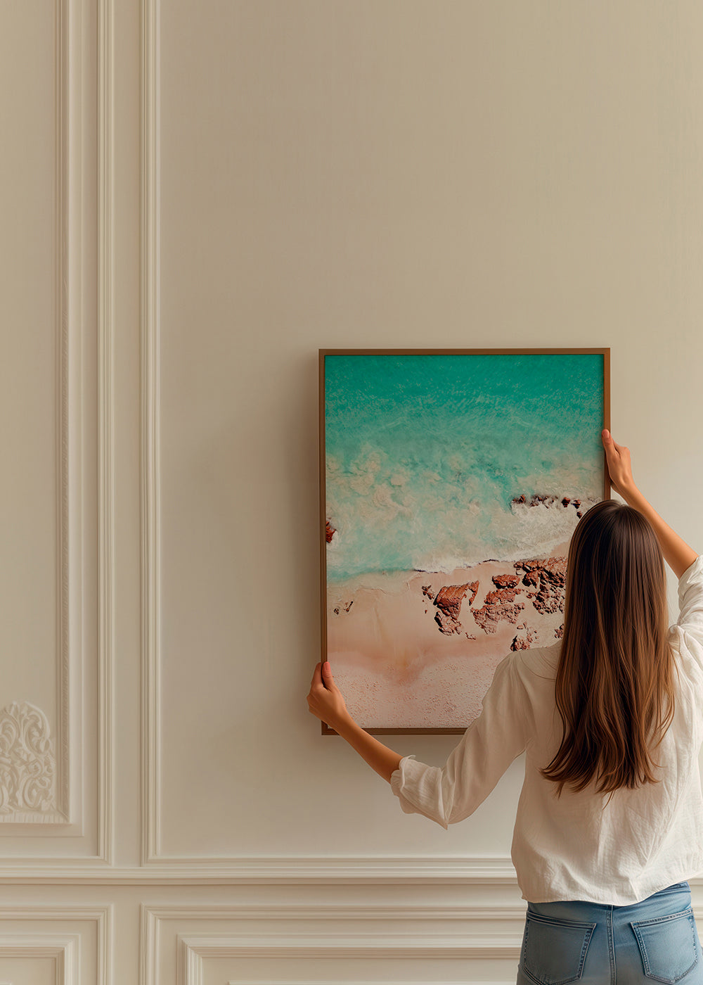 To hang our frames, you need to slightly separate the black or silver metal hanger from the back. Once separated, you can hang it from the hanger that you have chosen depending on the material of your wall.