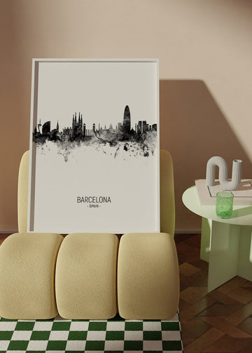 This poster from our skylines canvas series, by creative artist Michael Tompsett, in tones of black, and with vertical layout. A perfect piece for the eternal traveller. Pair it with our map and city prints. A modern touch for your home.
