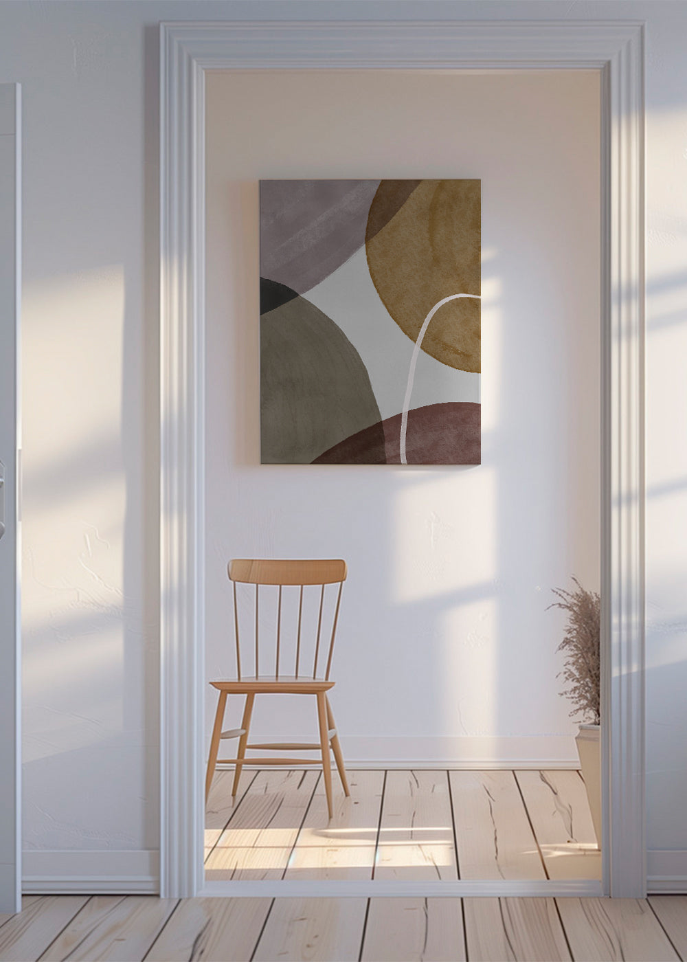 Each canvas is hand-stretched over a wooden frame. The depth is 3 cm for unframed canvases and 4 cm for framed canvases.