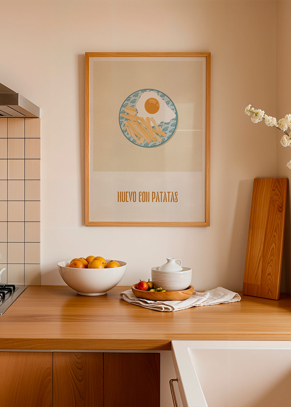 Beautiful print from our food posters collection, created by Nerea Ramírez, in tones of beige, and to hang in vertical position. Prints for the kitchen are a perfect decorative element for such a cosy space. The print your wall has been looking for.