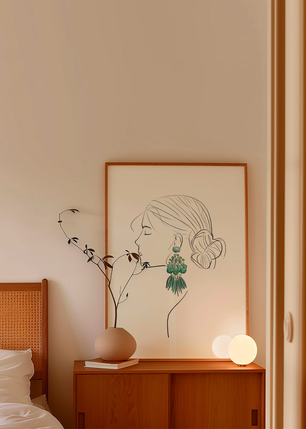 This piece from our repertoire of fashion posters and wall art, by Kruth Design, with green pigments, and to hang in vertical position. Illustrated prints give your home decor a touch of originality. An empty wall is a sad wall; but with a few prints, we'll make it smile.