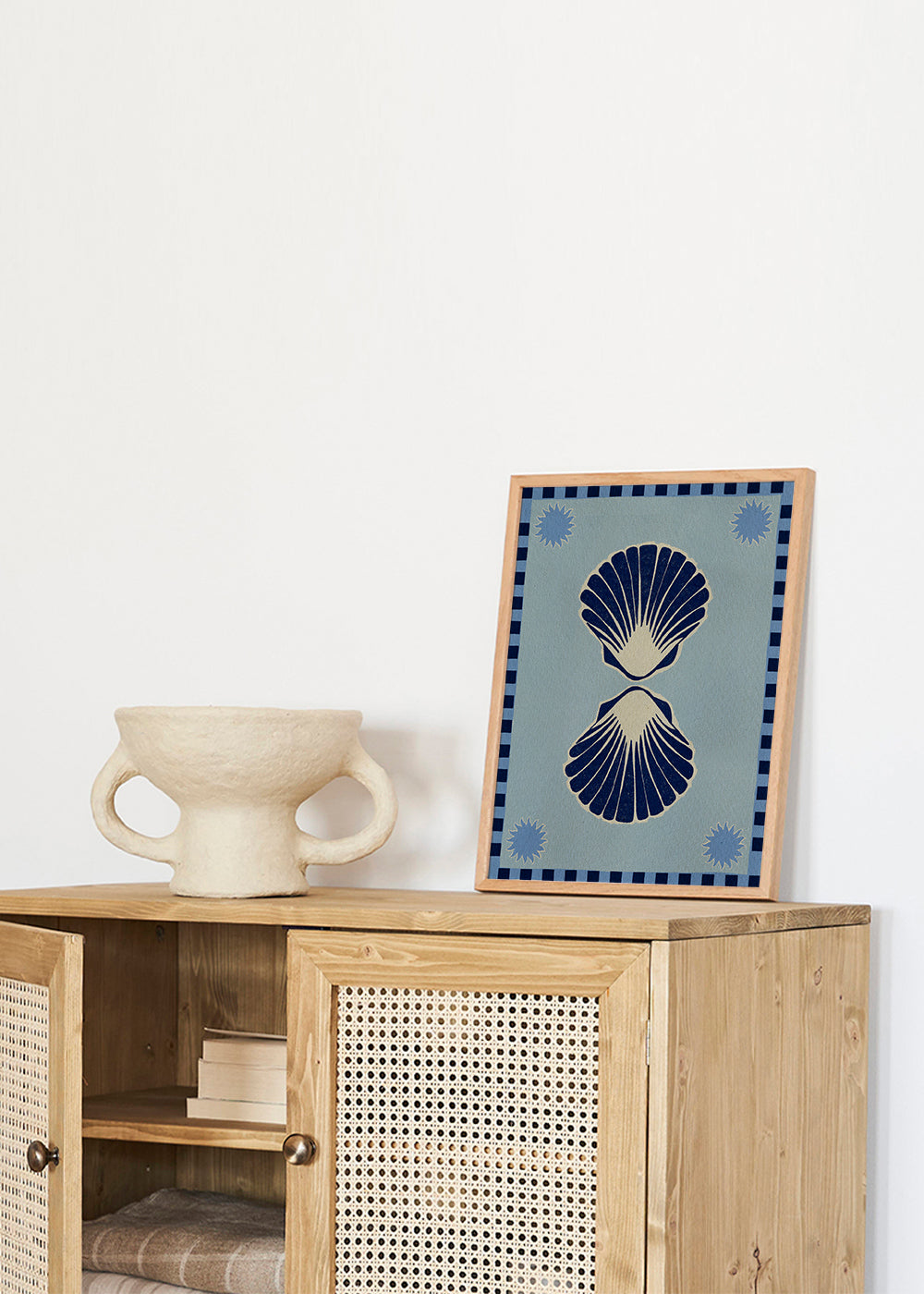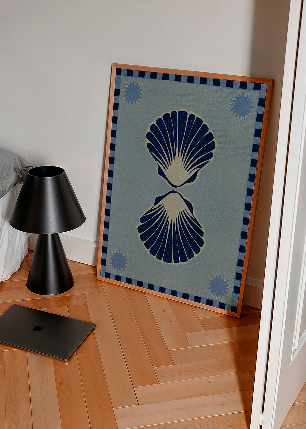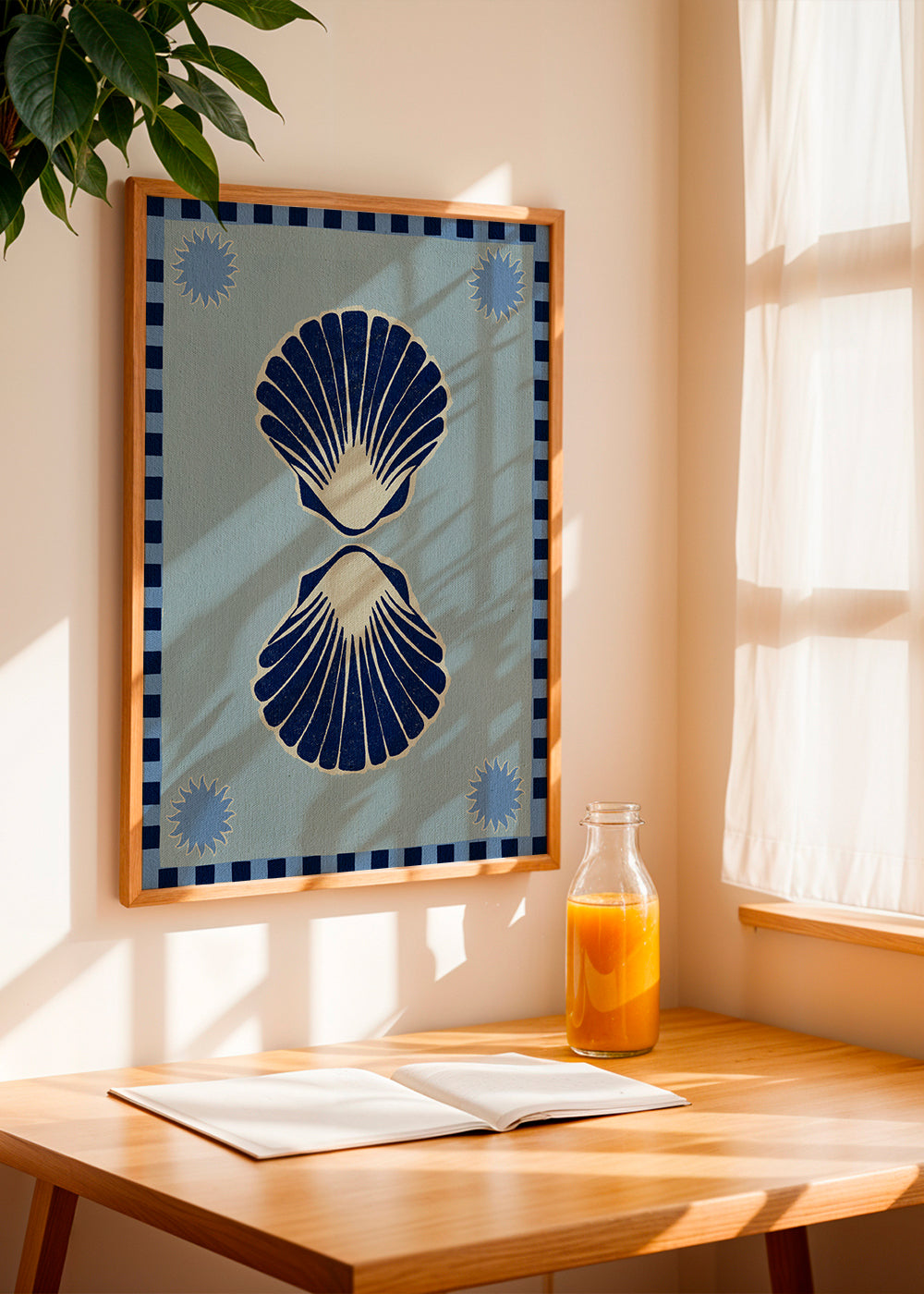Enchanting drawings. Beautiful print Designed by Shatha Dafai. Highlighted with blues shades perfect vertical composition. illustrated posters are the perfect way to fill your walls with creativity. Elevate your wall decor