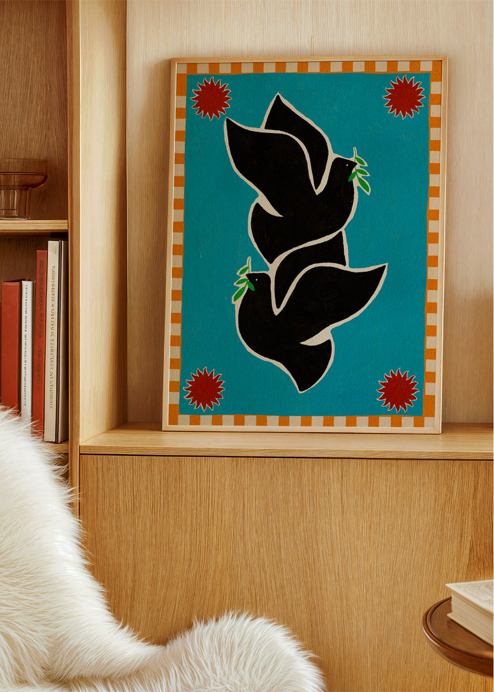Print: premium 250 gsm art paper, ideal for framing or hanging with poster holders.