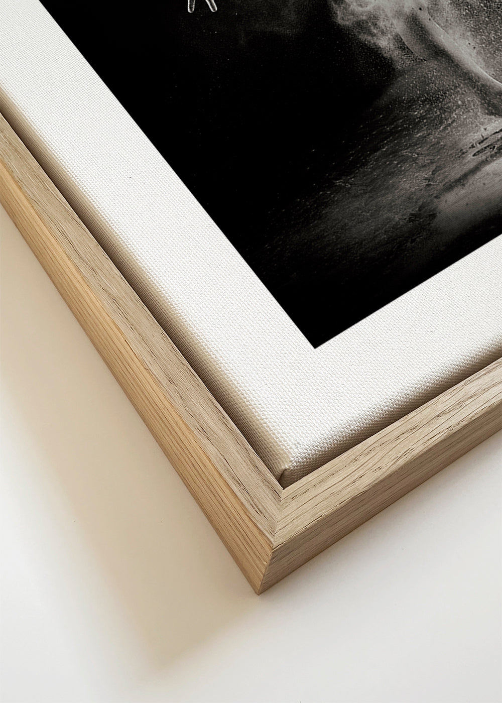 If you select the passepartout option, we will add the white matt board to the frame, and we will reduce the design of the work. For example, if you select a print size 20x28 in, with an oak colored frame and passepartout, we will reduce the design of the print to the previous size (16x20 in). In this way, it will adapt perfectly to the inside window of the passepartout.