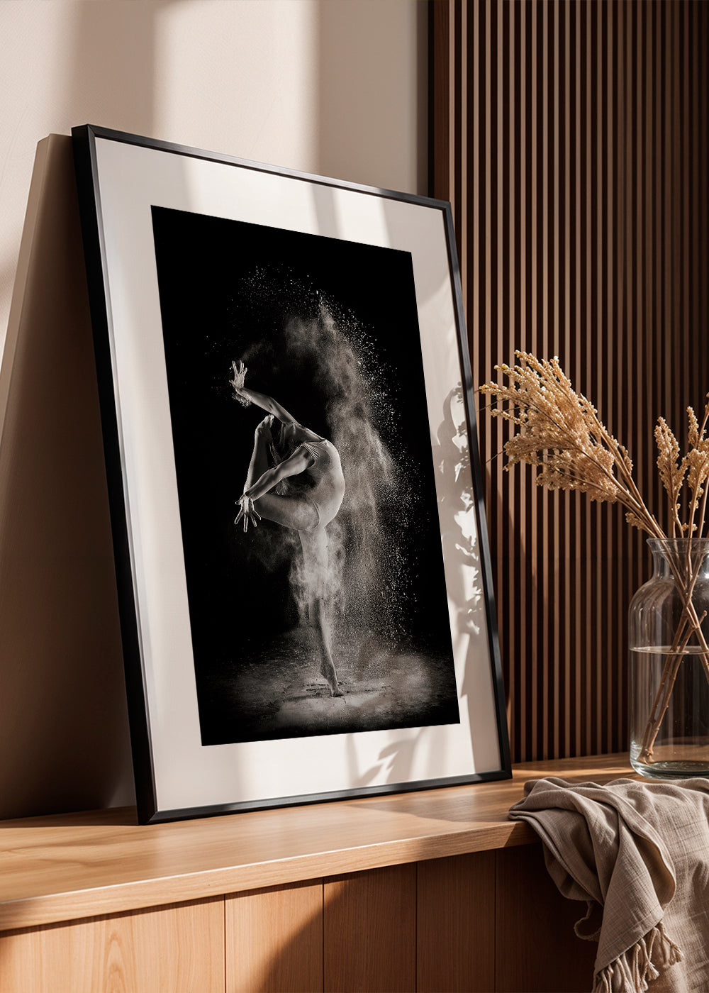 Beautiful design from our dance posters collection, in tones of black and white, and to hang in vertical position. Photography is an art form that can change any decoration. Adding photo prints to your interior design modernises any room. The final touch you were looking for. This design includes a white strip around it to add contrast to the piece.