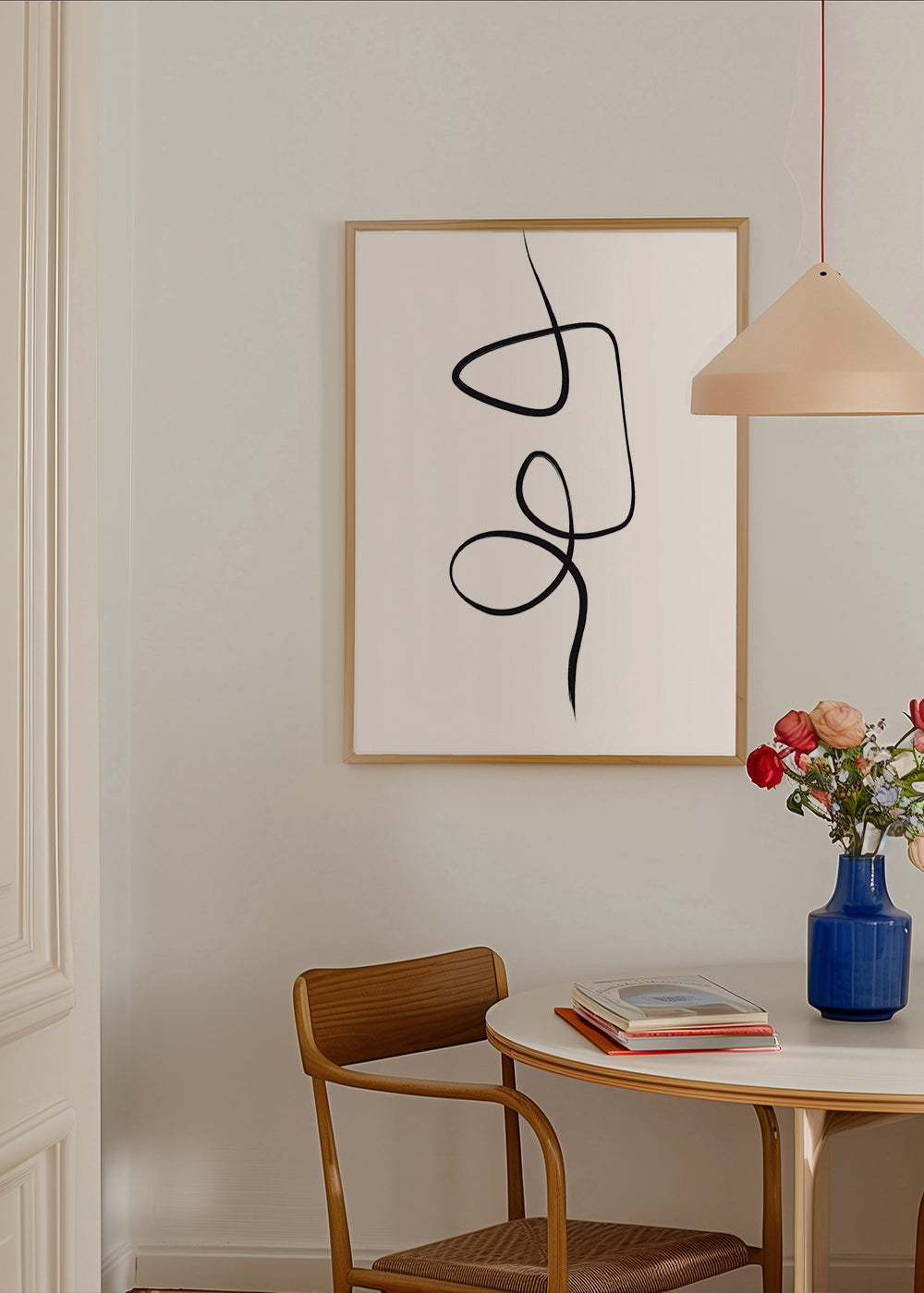 A poster from the geometric wall art and prints series, from the Nouveau Prints collection, with black tones, and to hang in vertical position. Geometric art is an elegant style to decorate the walls of your home with. Create spots full of art.