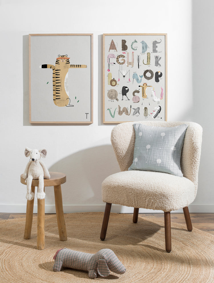 This poster from our alphabet and letters posters collection, from the collection of the artist typealive, with shades of multicolor, and vertical layout. If you're looking to decorate the little one's room, this design is perfect. There are no ugly or beautiful walls, just empty or full ones.