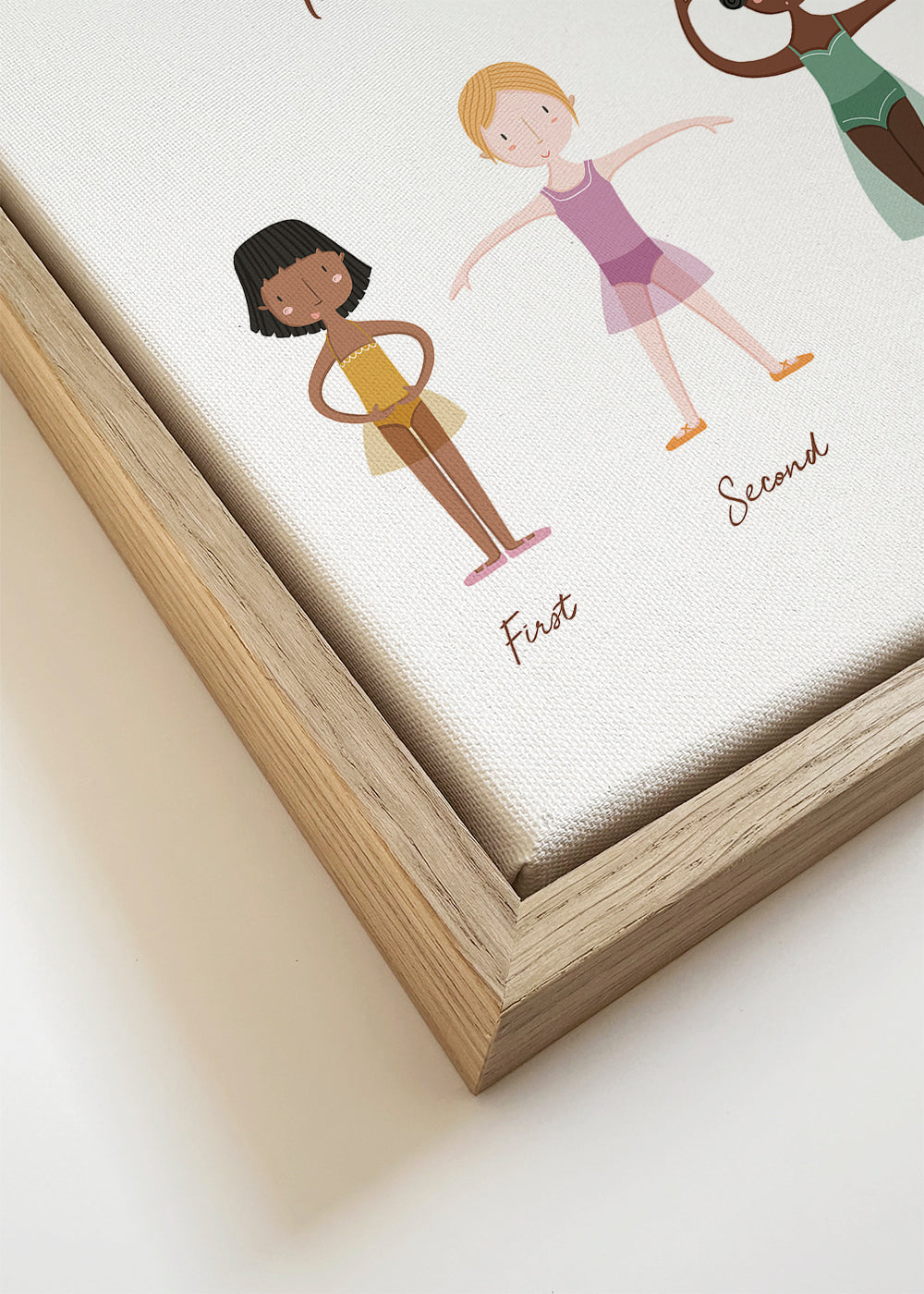A poster from our repertoire of dance posters, made by Marta Munte, in multicolor shades, and horizontal layout. Posters for kids are the perfect way to brighten up the little ones' rooms. It's always a good time to freshen up your home.