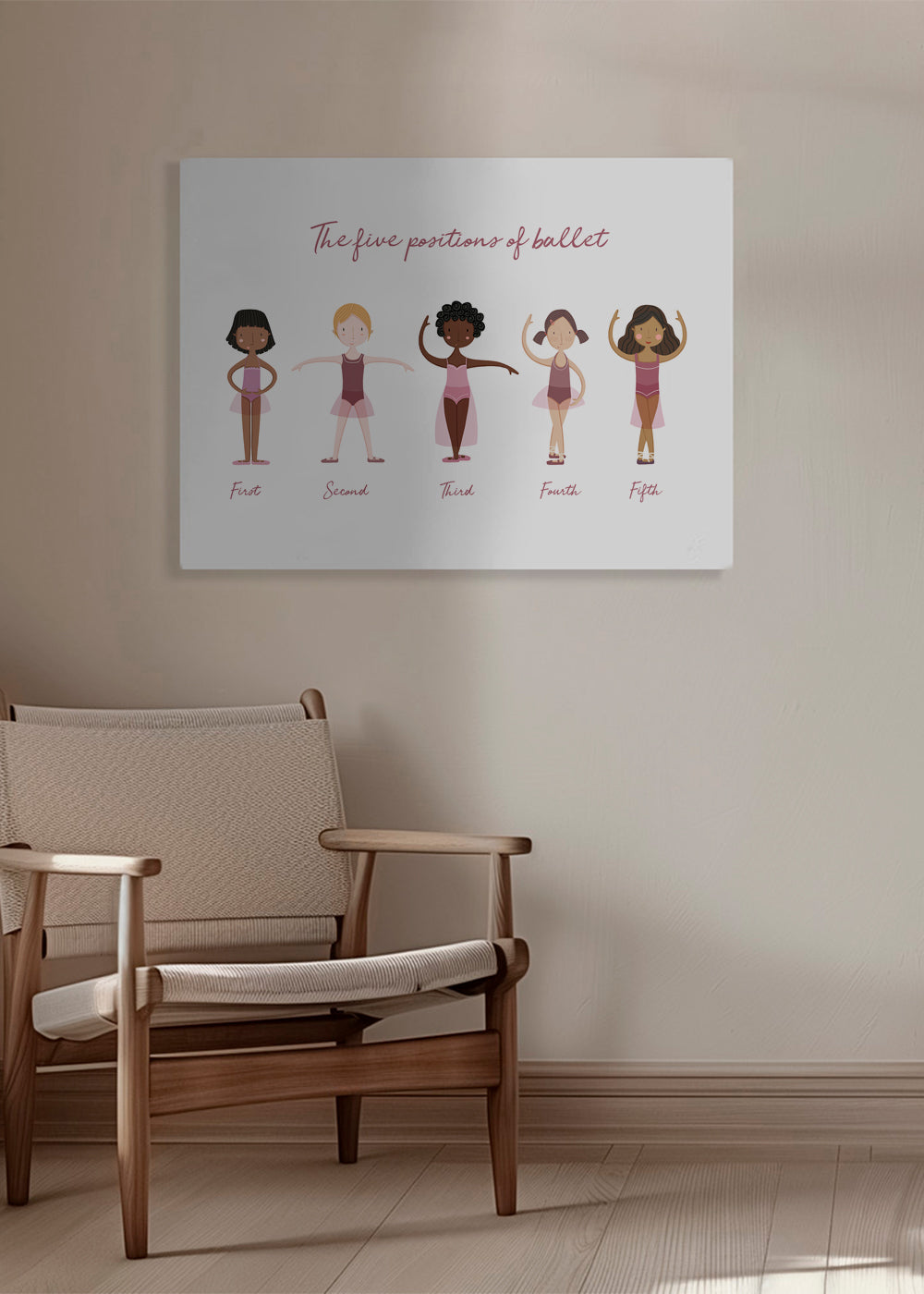 A print from our dance posters series, from the mind of Marta Munte, with touches of pink, and to hang in horizontal position. Inspire your kids' creativity with these and other posters for kids. An empty wall is a canvas waiting to be painted.