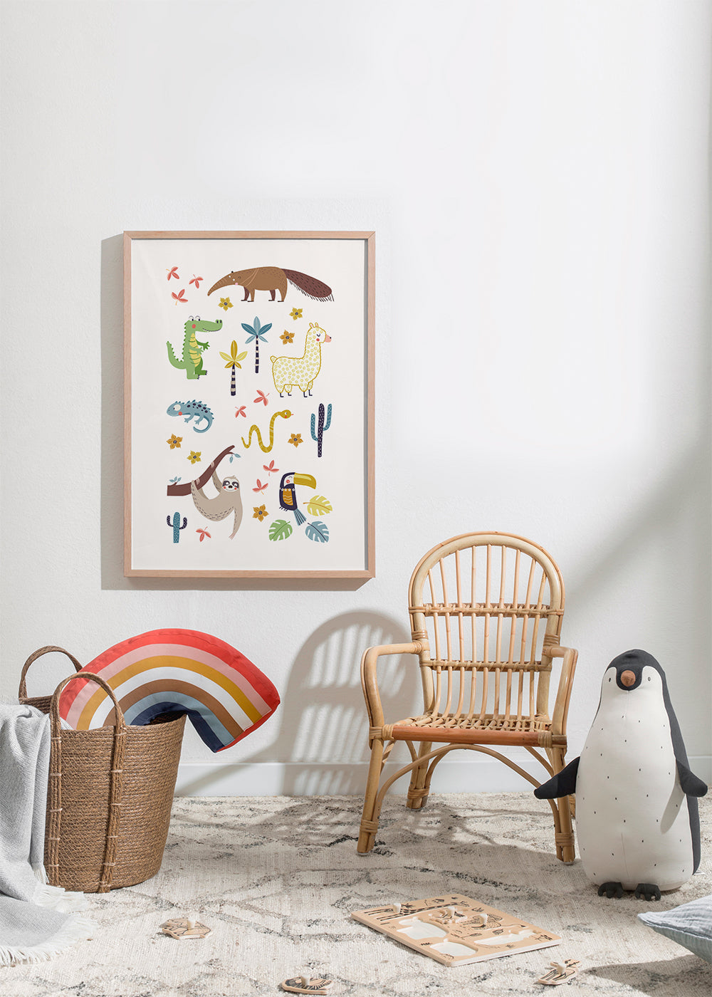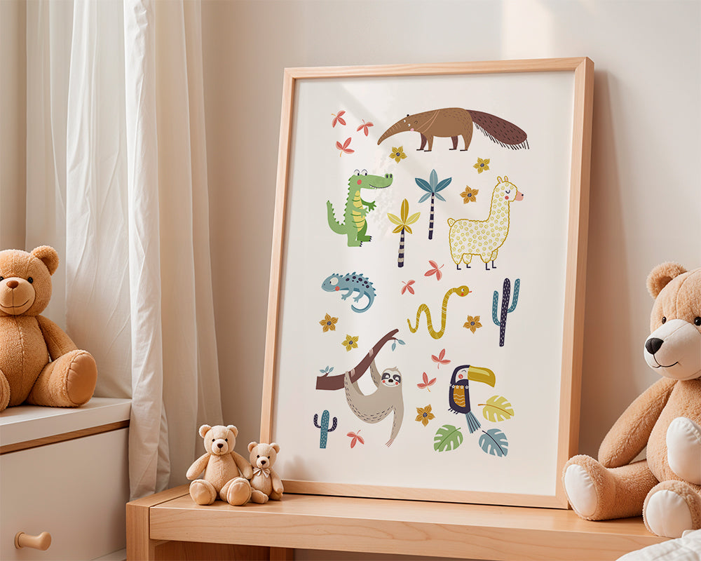 This print in the style of our animal wall art, from the collection of the artist Marta Munte, with touches of multicolor, and to hang in vertical position. Decorating with animal prints is a great way to make your walls more energetic. Give your decor an artistic touch.
