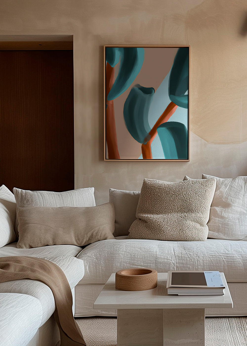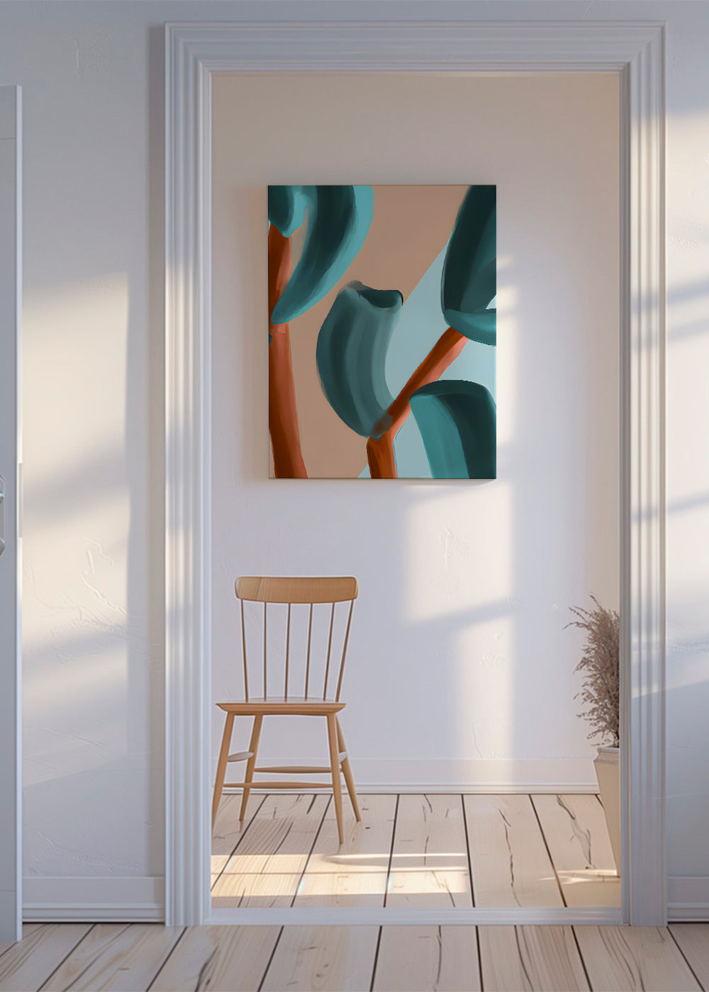 Each canvas is hand-stretched over a wooden frame. The depth is 3 cm for unframed canvases and 4 cm for framed canvases.