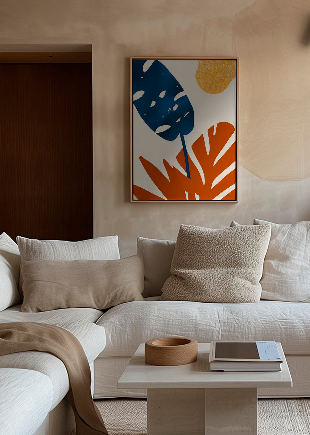 Each canvas is hand-stretched over a wooden frame. The depth is 3 cm for unframed canvases and 4 cm for framed canvases.