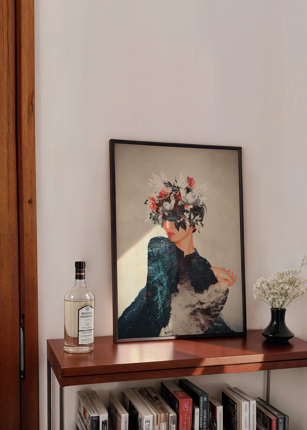This piece from our repertoire of girls wall art, created by Frank Moth, with touches of blue, and facing vertically. Give your style a vintage touch by pairing this print with other retro-style posters. Fill your walls with prints.
