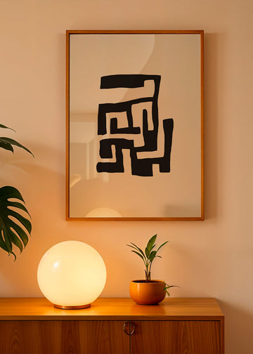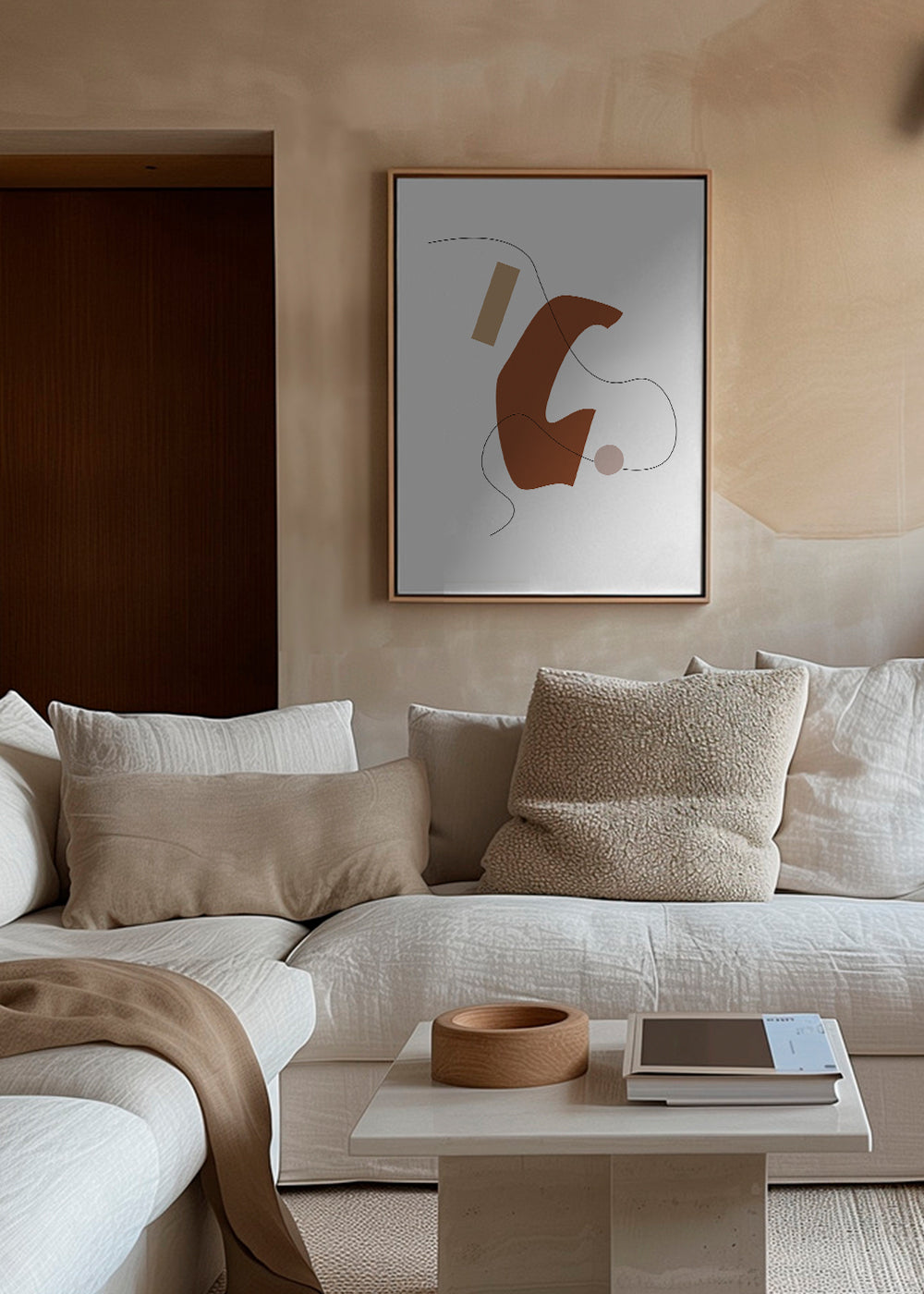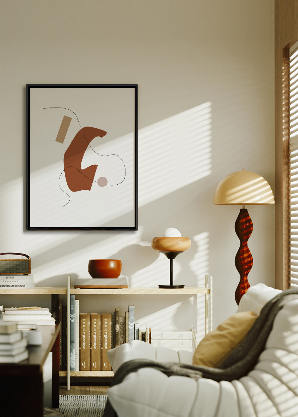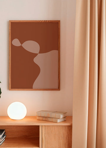 This print from the geometric wall art and prints category, by Studio Krone Kern, in tones of brown, and facing vertically. The abstract, geometric shapes help create a casual, creative setting. Pure art and design.